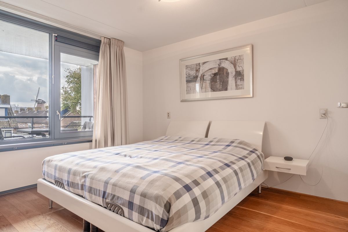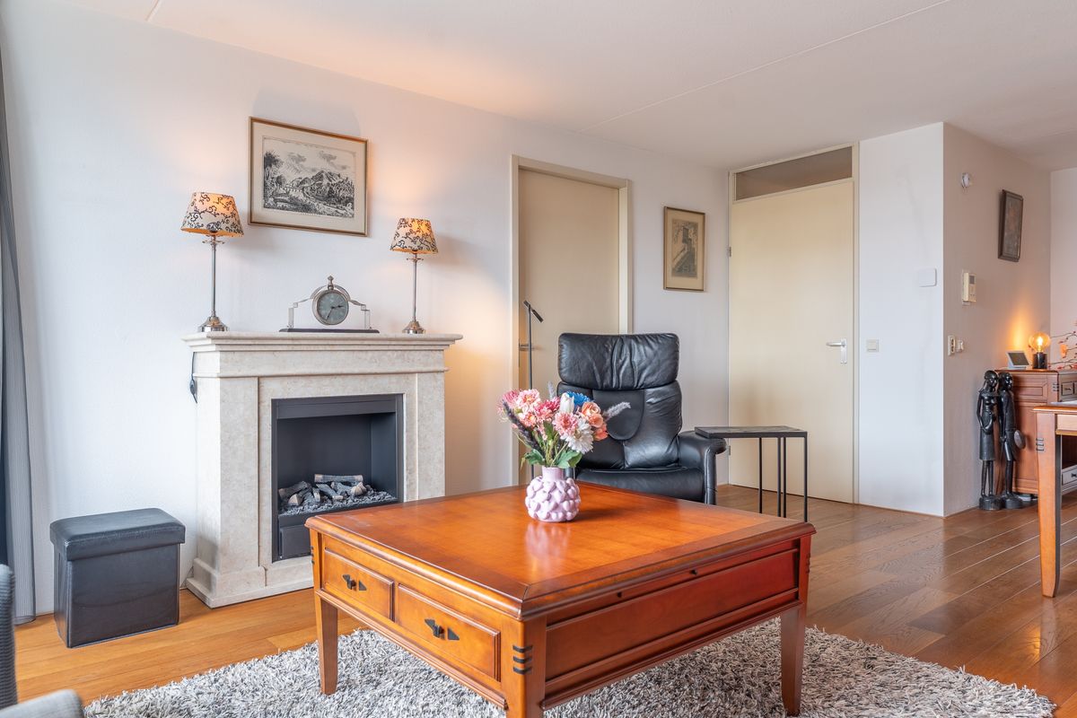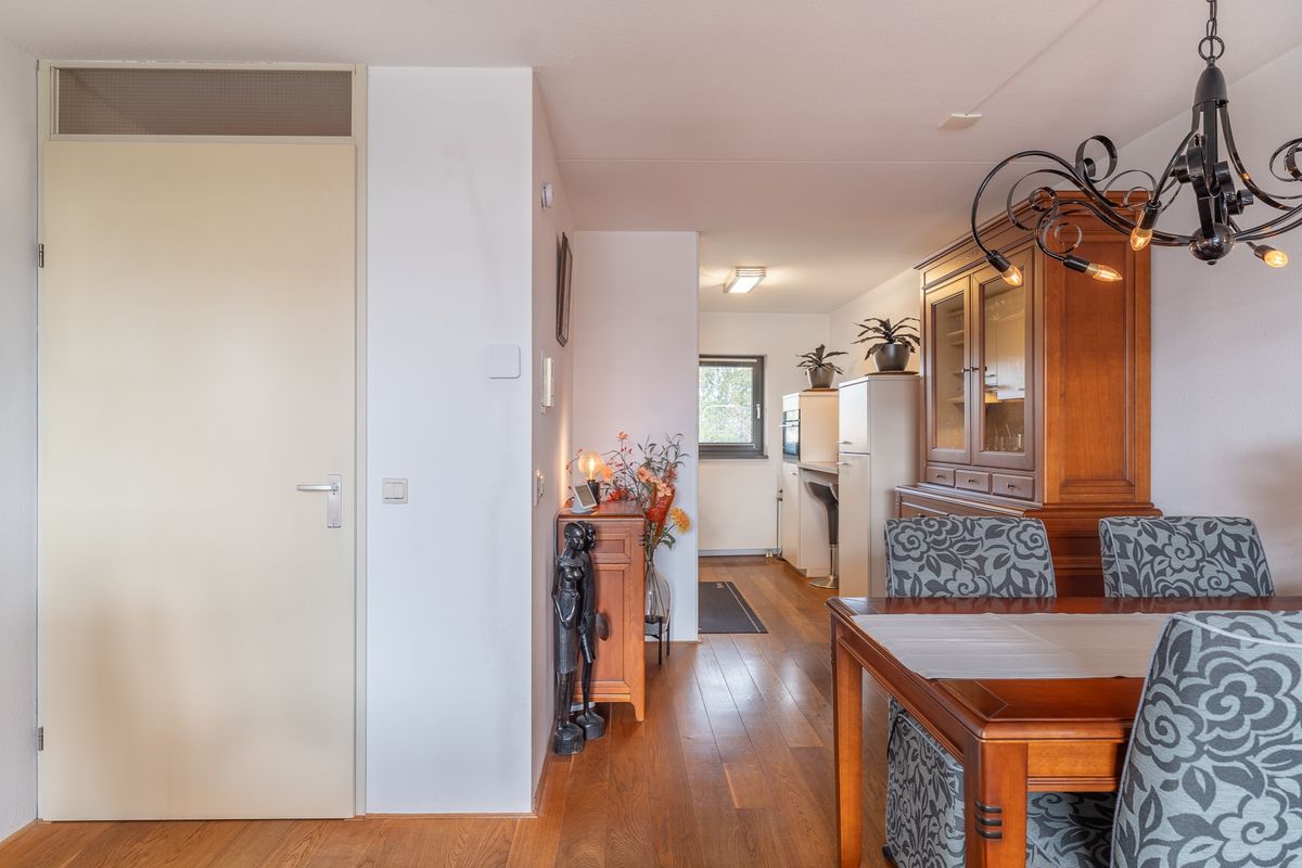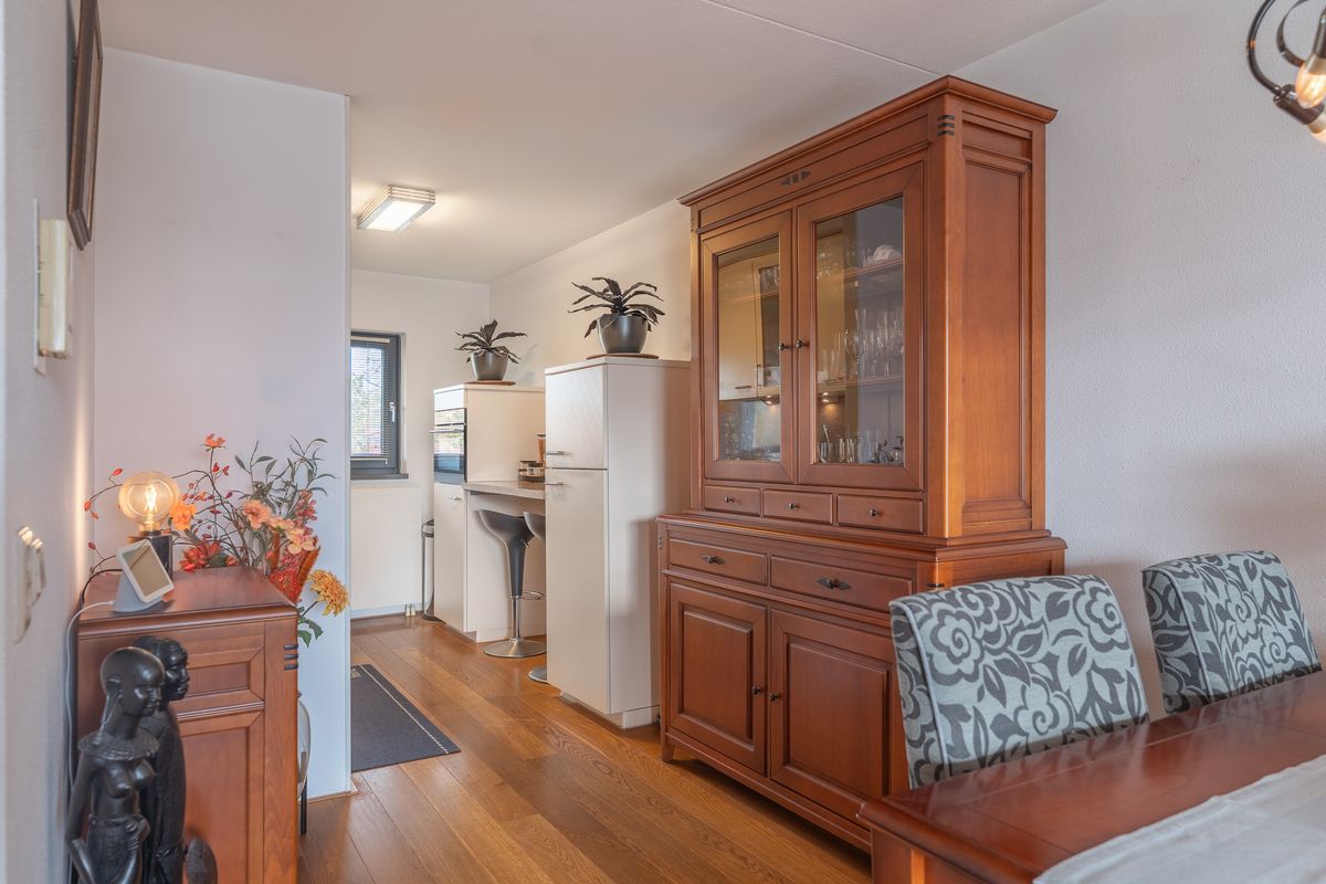 Vanuit de galerij kom je binnen in de hal die toegang biedt tot de verschillende vertrekken. De woonkamer is licht en prettig ingedeeld, met grote raampartijen en een deur naar het zonnige balkon op het zuiden. De woning is voorzien van een eiken parketvloer, wat zorgt voor een warme en stijlvolle uitstraling.