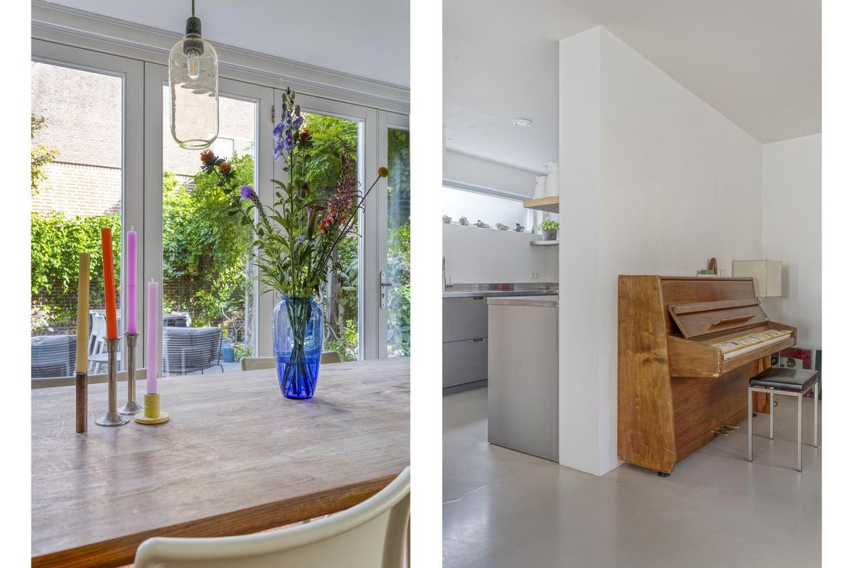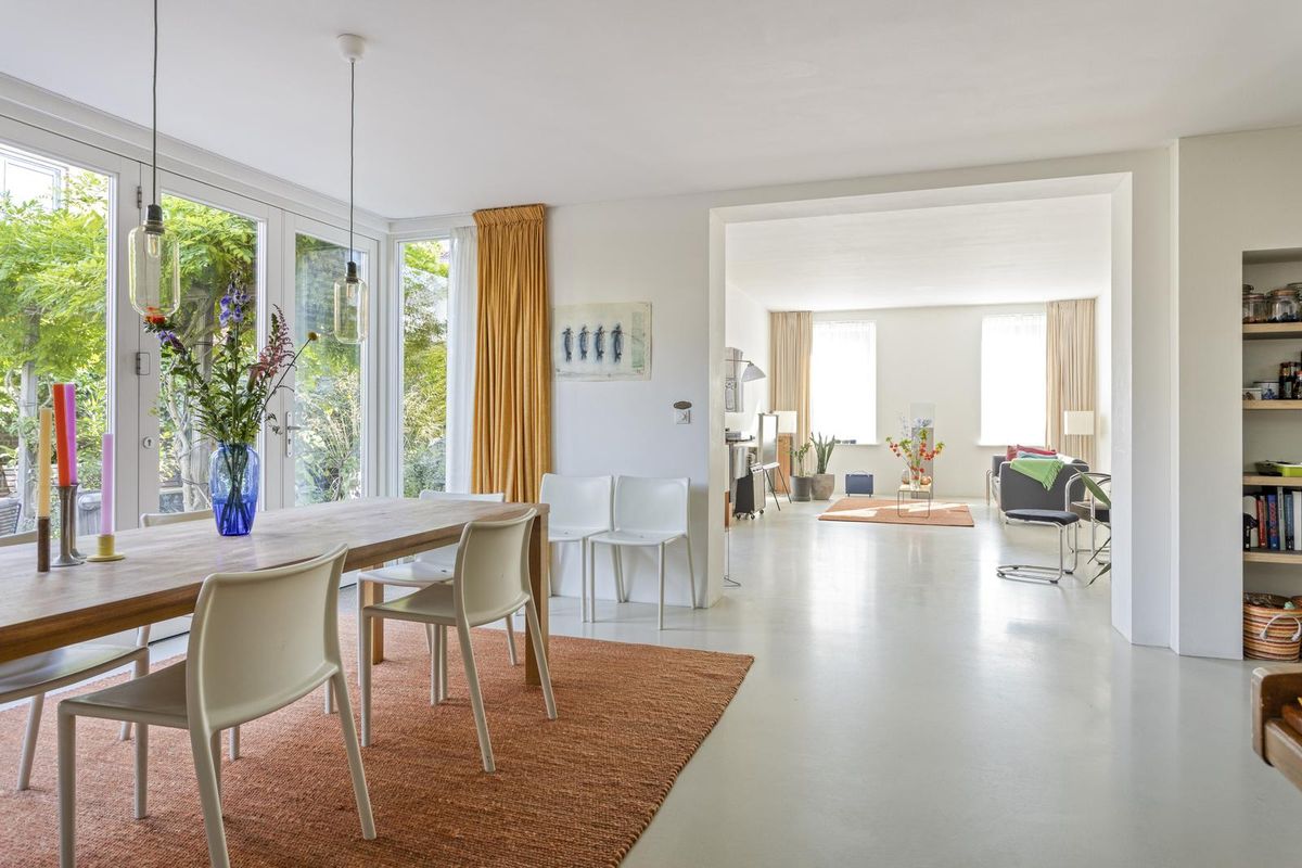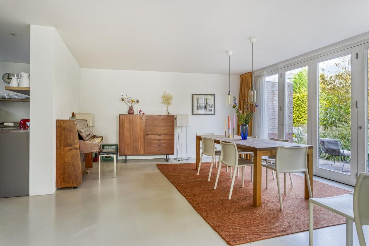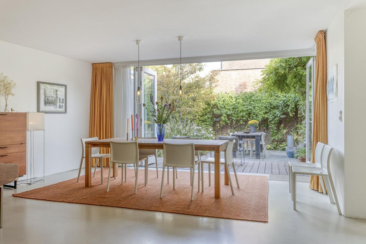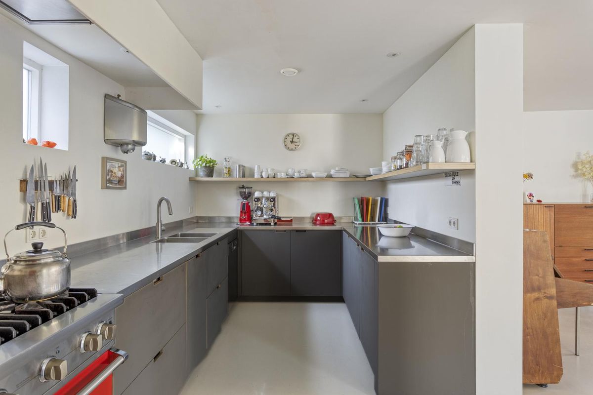 De woonkamer is een echte blikvanger. Ruimtelijk, strak afgewerkt en heerlijk licht. De ruimte is logisch opgedeeld in een knusse zithoek en een royale eethoek. Bijzonder is de grote harmonica tuindeur die volledig geopend kan worden. Hierdoor lopen binnen en buiten naadloos in elkaar over, alsof je op een zomerse dag letterlijk in de tuin woont. De echte horeca keuken is stijlvol met een robuust RVS werkblad, veel opbergruimte en een handige indeling. Er is voldoende plek voor een koffiebar en dankzij het open karakter blijf je altijd in contact met de rest van de ruimte. Echt zo'n keuken waar je graag kookt én leeft.