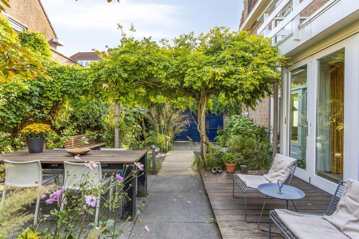 De tuin is zonder twijfel een van de grootste verrassingen van dit huis. Een oase van groen met meerdere terrassen, volop privacy, een grote berging en een flinke diversiteit aan planten en bomen. En alsof dat nog niet genoeg is, is er een extra stuk perceel bijgekocht: een “verborgen” stukje tuin dat zich perfect leent als moestuin, speelveld voor de kinderen of extra loungeplek. Via een grote zijpoort is de tuin ook makkelijk bereikbaar, ideaal voor fietsen, afvalcontainers of gewoon een handige achterom. Daarnaast kan hier perfect een garage of carport gerealiseerd worden.
