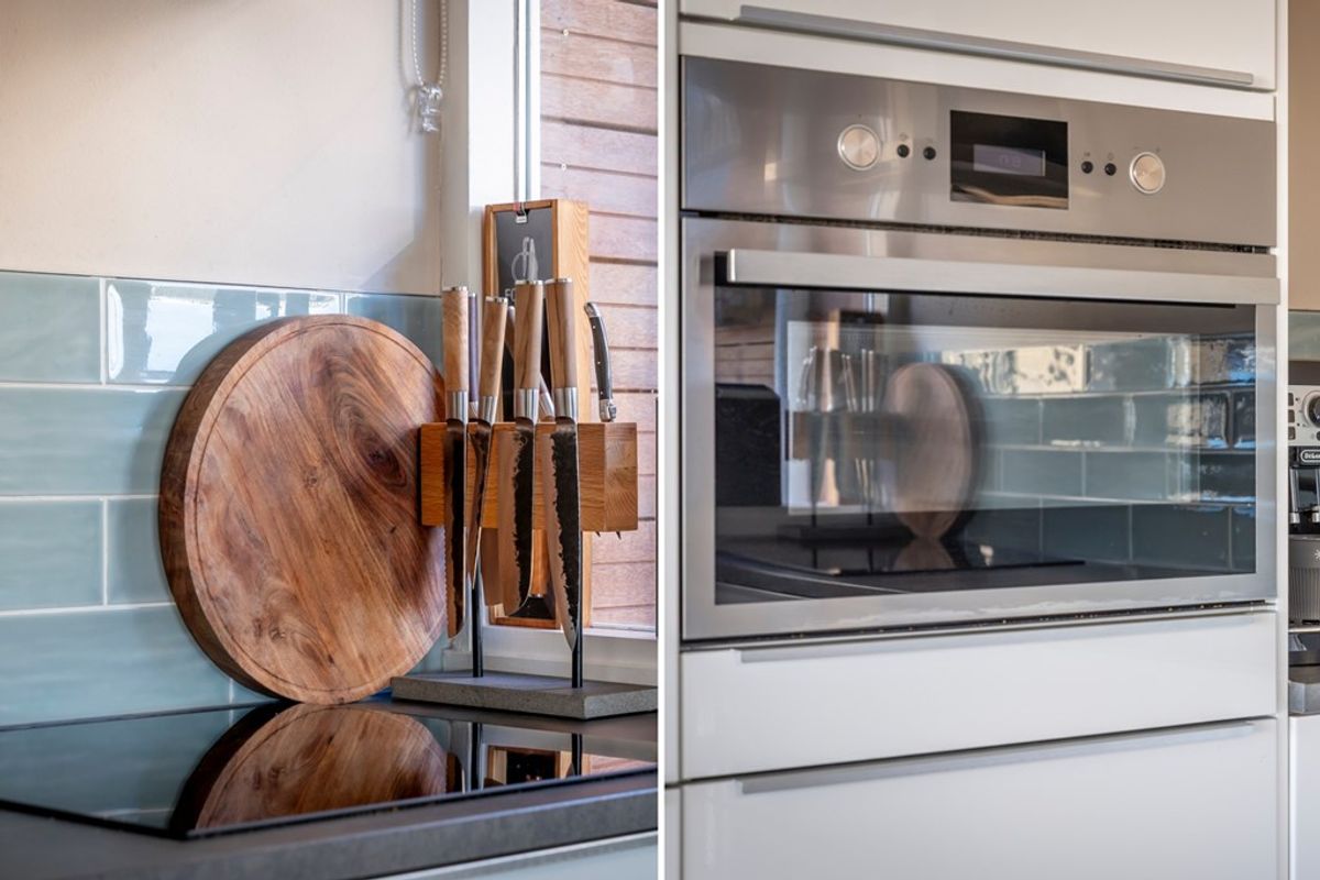 De royale, door licht overgoten woonkamer is uitgerust met airconditioning en vormt samen met de open keuken een fijne en uitnodigende leefruimte. Hier vind je tevens twee balkons – oostgericht en zuidgericht – zodat je op elk moment van de dag kunt genieten van zon óf juist de schaduw.