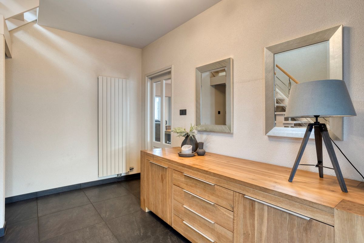 De leefruimtes op de begane grond zijn voorzien van een tegelvloer met vloerverwarming.