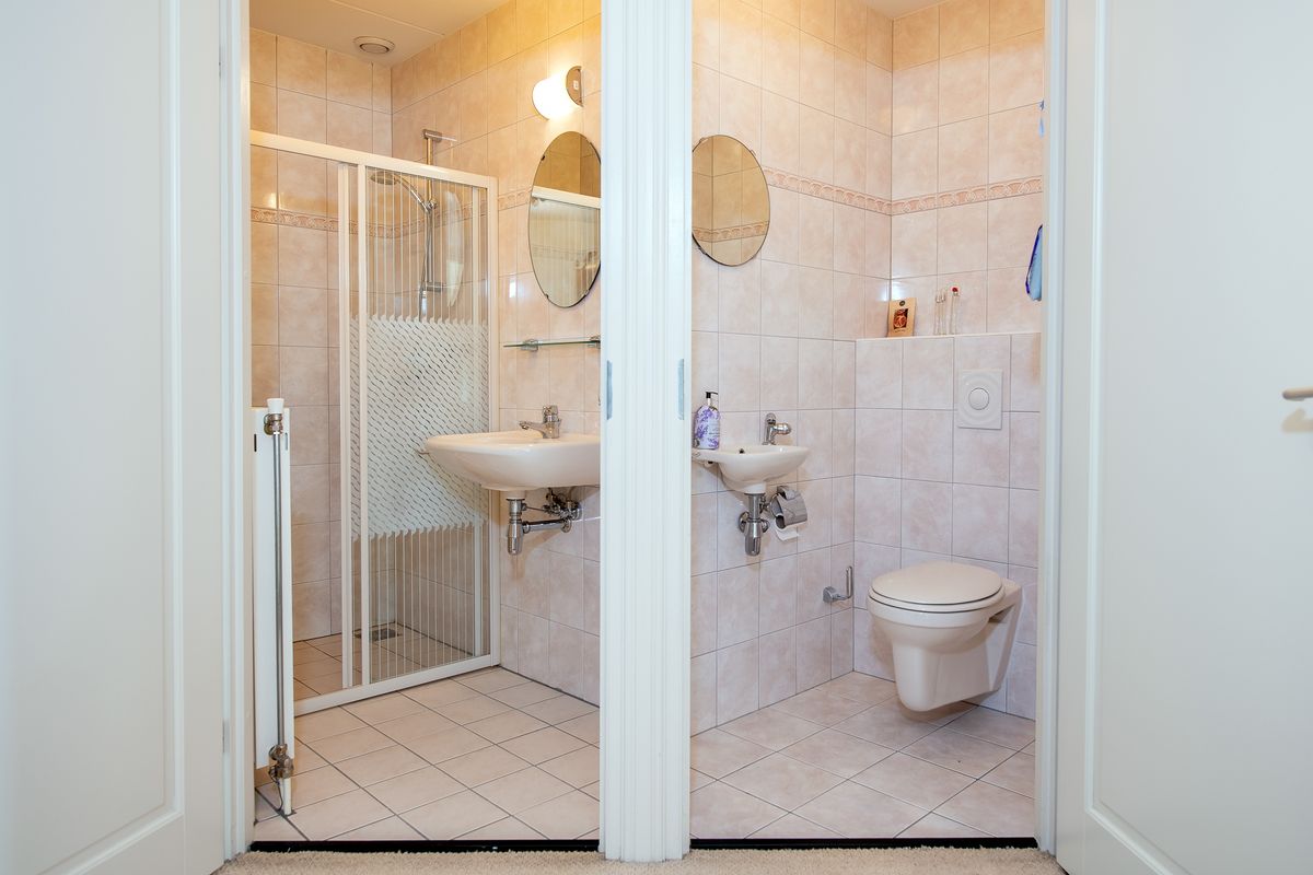 Vanuit de living heeft u toegang tot een slaap/werkkamer en de master-bedroom met een 2e eigen badkamer, voorzien van een bad, inloopdouche, toilet en wastafel.