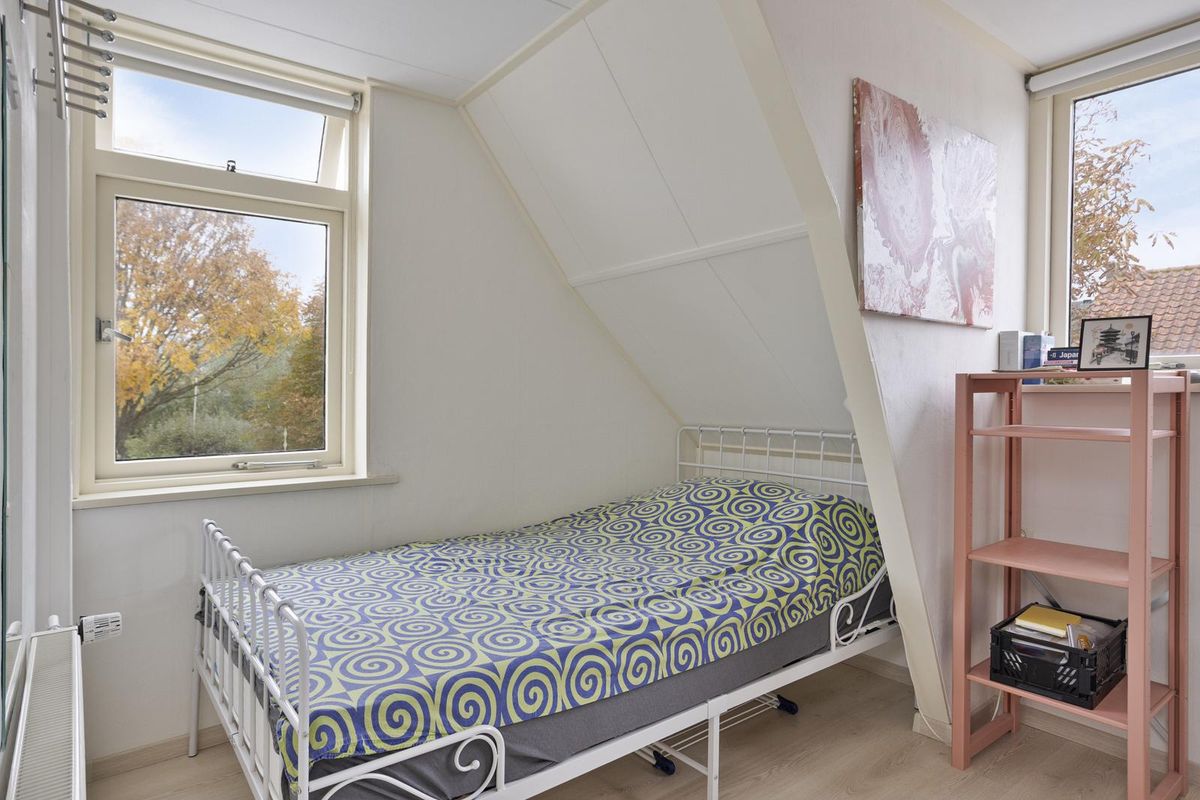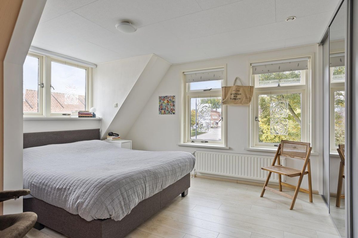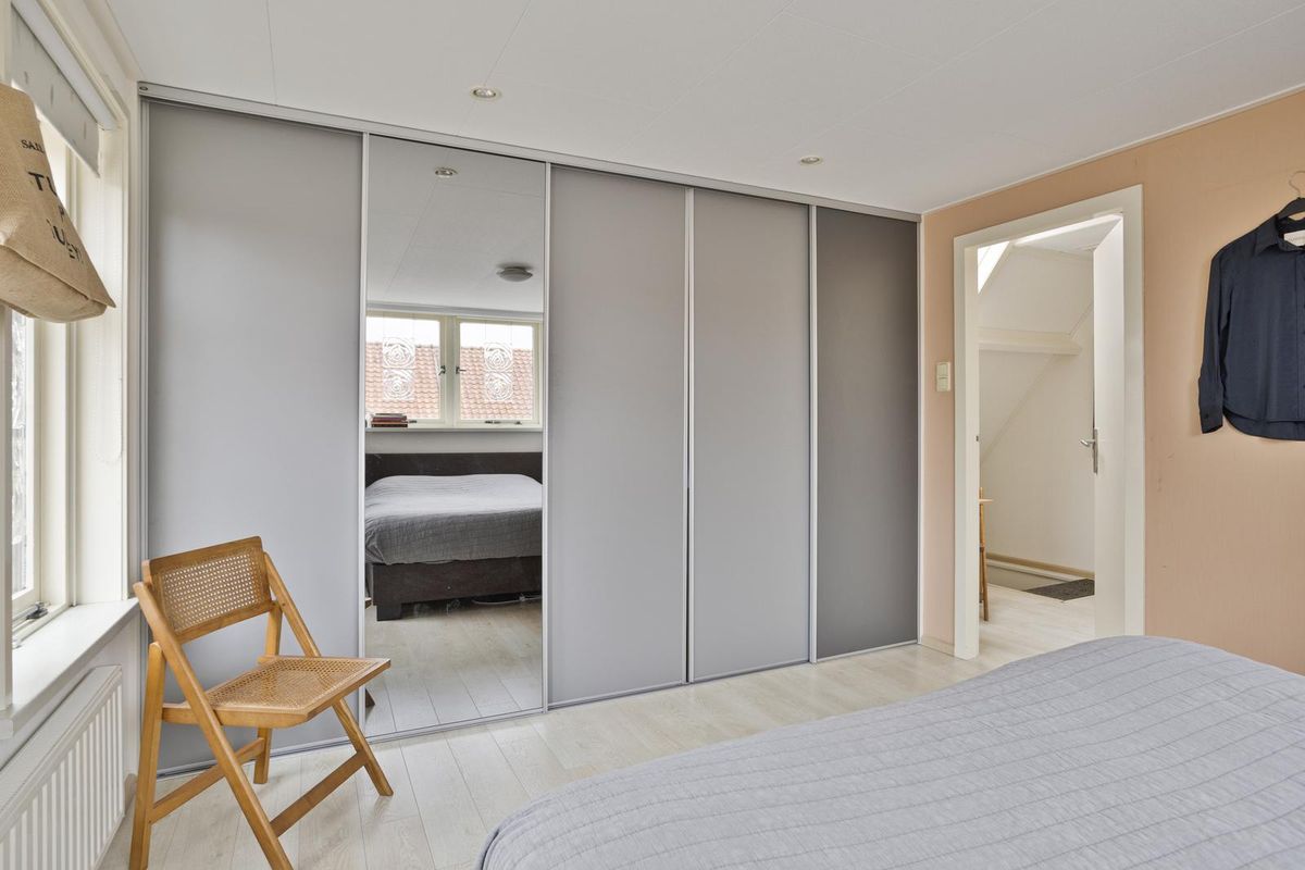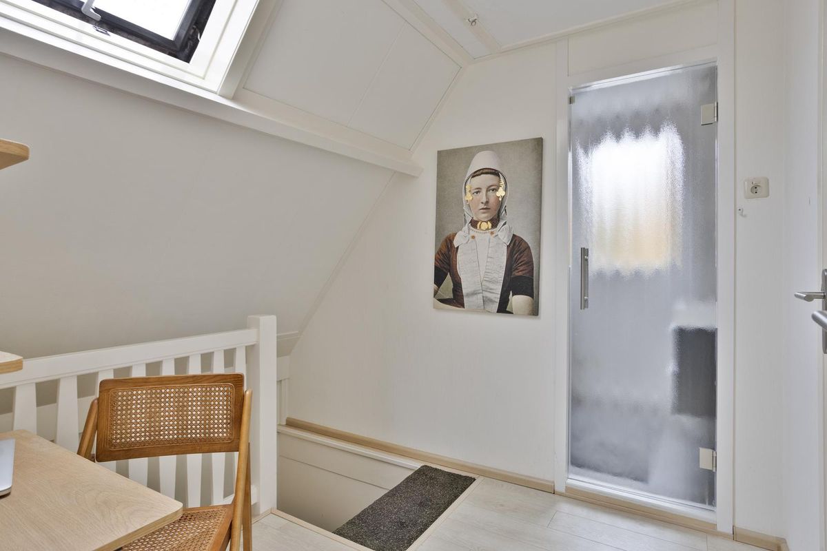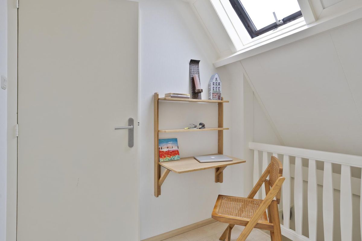 Op de overloop komt veel licht binnen via het dakraam. De masterbedroom is licht en ruim met een grote vaste kast, terwijl de tweede slaapkamer eveneens veel lichtinval heeft en een eigen wastafel. De nette badkamer beschikt over een inloopdouche, toilet en wastafel, en biedt toegang tot het platte dak en zorgt ook voor goede ventilatie.