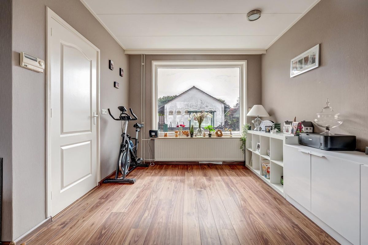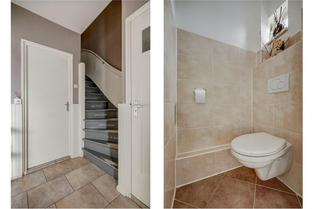 Bij binnenkomst komt u in de hal met toegang tot het toilet, de meterkast en de trapopgang naar de eerste verdieping. Vanuit de hal stapt u de lichte woonkamer in, waar de grote raampartij aan de achterzijde zorgt voor veel daglicht en een vrij uitzicht op de tuin. De woonkamer biedt voldoende ruimte voor een gezellige zithoek en eethoek, en is afgewerkt met een fraaie houtlook vloer die een warme uitstraling geeft.