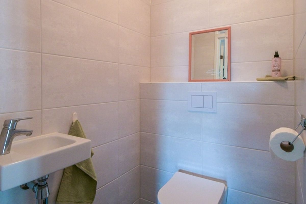 Op de eerste verdieping zijn vier ruime slaapkamers, waarvan 2 toegang hebben tot het fraaie balkon. Met karakteristieke details zoals de balkons over de volle breedte met stijlvolle balustrades, ademt het geheel die typische Scandinavische sfeer en warmte. De standaard badkamer beschikt over een douchecabine, wastafel en tweede toilet. De CV ketel, Nefit uit 2012 en de omvormer voor de zonnepanelen bevinden zich in een separate ruimte op de overloop.