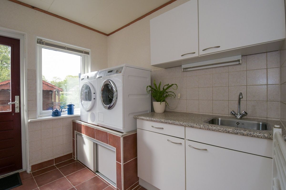 De gesloten moderne keuken met vloerverwarming is toegankelijk vanuit de woonkamer en de hal. De keuken beschikt over diverse inbouwapparatuur, waaronder; boiler, inductie kookplaat, heteluchtoven, koelkast en vaatwasser (Neff). Vanuit de keuken is er direct toegang tot de bijkeuken met opstelplaats voor witgoed. Vanuit de hal is de werkkamer/slaapkamer met badkamer bereikbaar. De moderne badkamer met vloerverwarming is in 2020 vernieuwd en heeft een ruime inloopdouche met zitgedeelte en een dubbele wastafel.