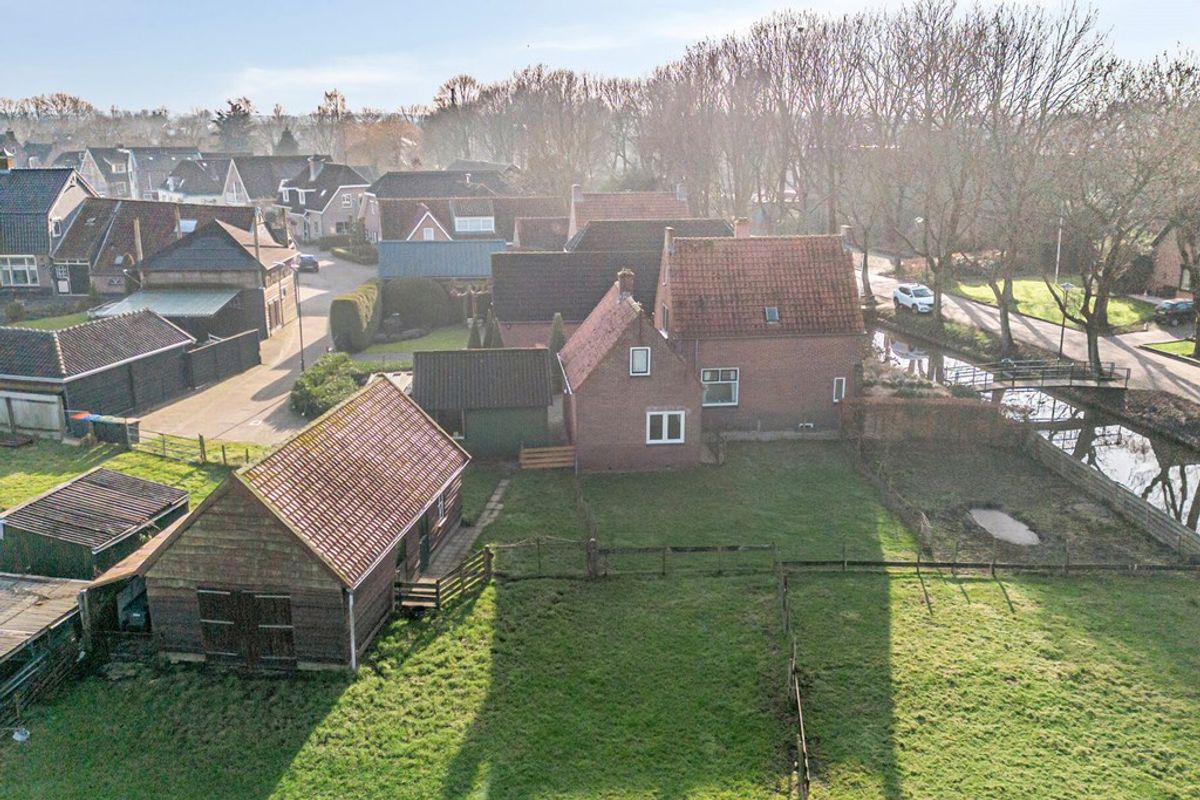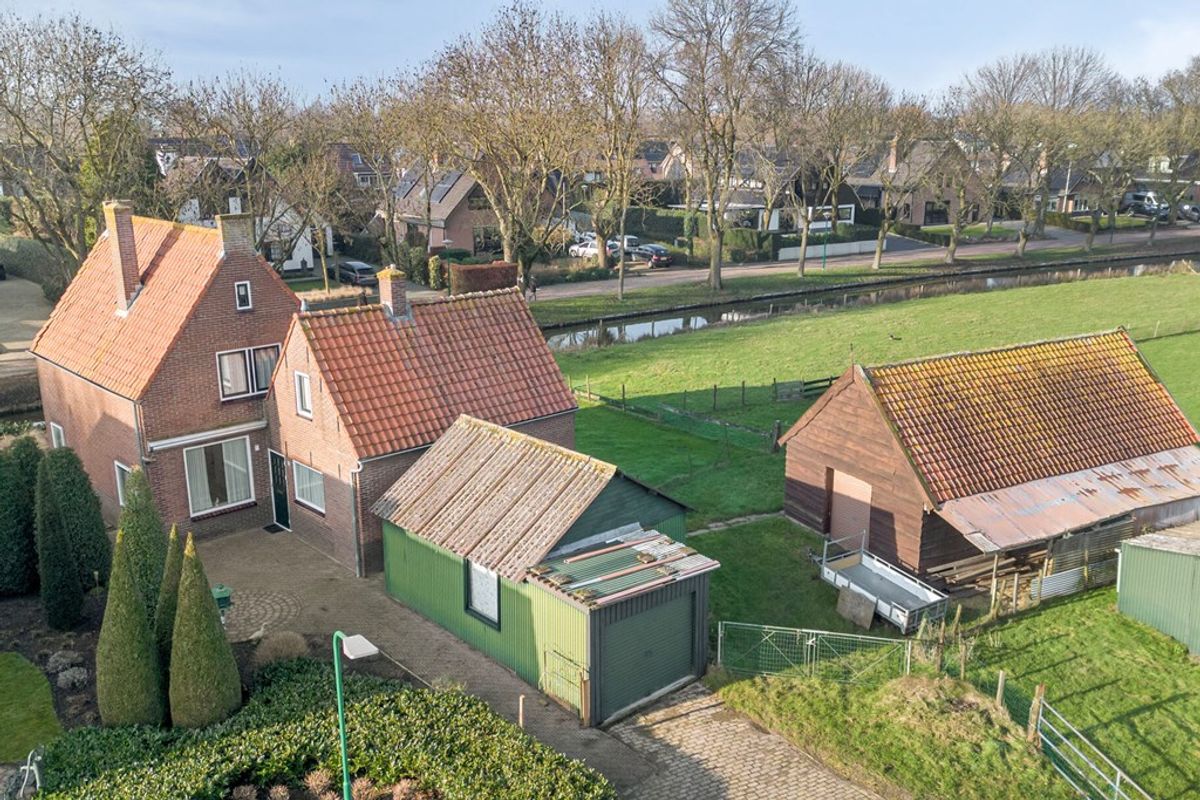 De woning is gelegen op een royaal perceel met een diepe tuin die grenst aan de stadsweiden, wat zorgt voor een vrij en landelijk gevoel. Op het perceel bevinden zich diverse bijgebouwen, waaronder een garage en schuren, ideaal voor opslag, hobby of het houden van dieren. De oprit biedt parkeergelegenheid op eigen terrein. Dankzij de ligging en omvang geniet u hier van rust, privacy en een weids uitzicht.