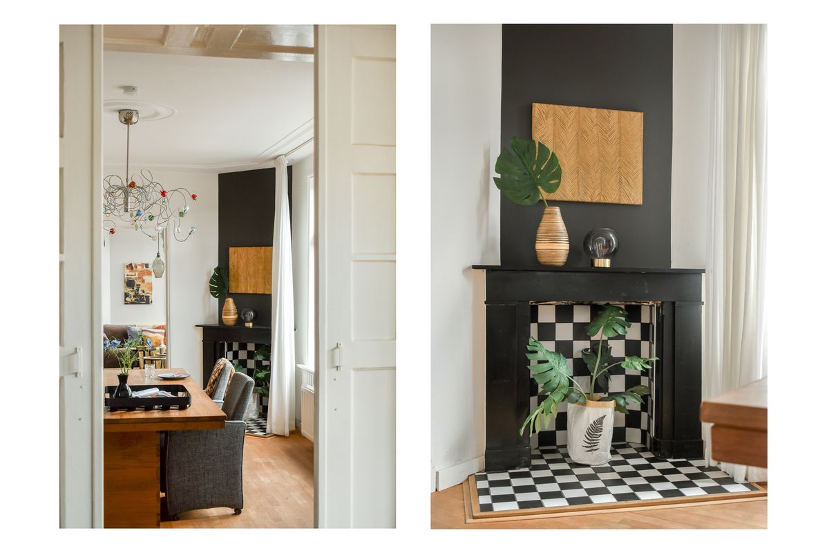 From the ground floor, you ascend via a charming covered staircase to the landing on the first floor, where you enter the corner apartment through a spacious hallway with storage under the stairs. The first thing you notice is the abundance of light thanks to the corner position and large windows.