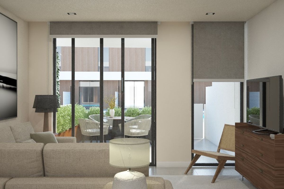 -Type 6: €280.800 - 65,65 m² bebouwd, 57,45m² bruikbaar, 21,20m² aangebouwde serre 16,35m², overdekt terras, 42,30m² voor, overdekt terras, 15,05m² achterPanorama, a new residential complex in one of the most sought-after areas of the island of Fuerteventura, Corralejo.