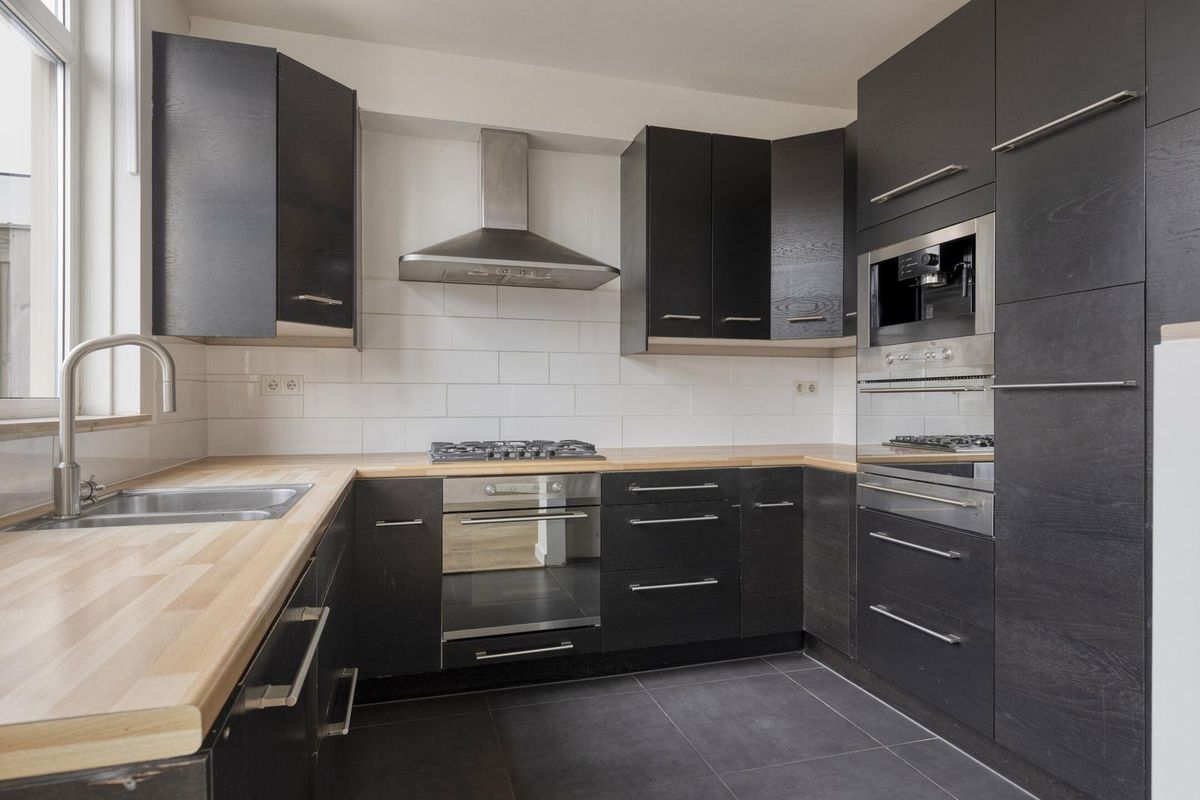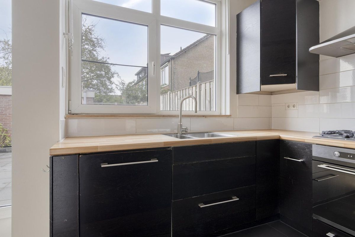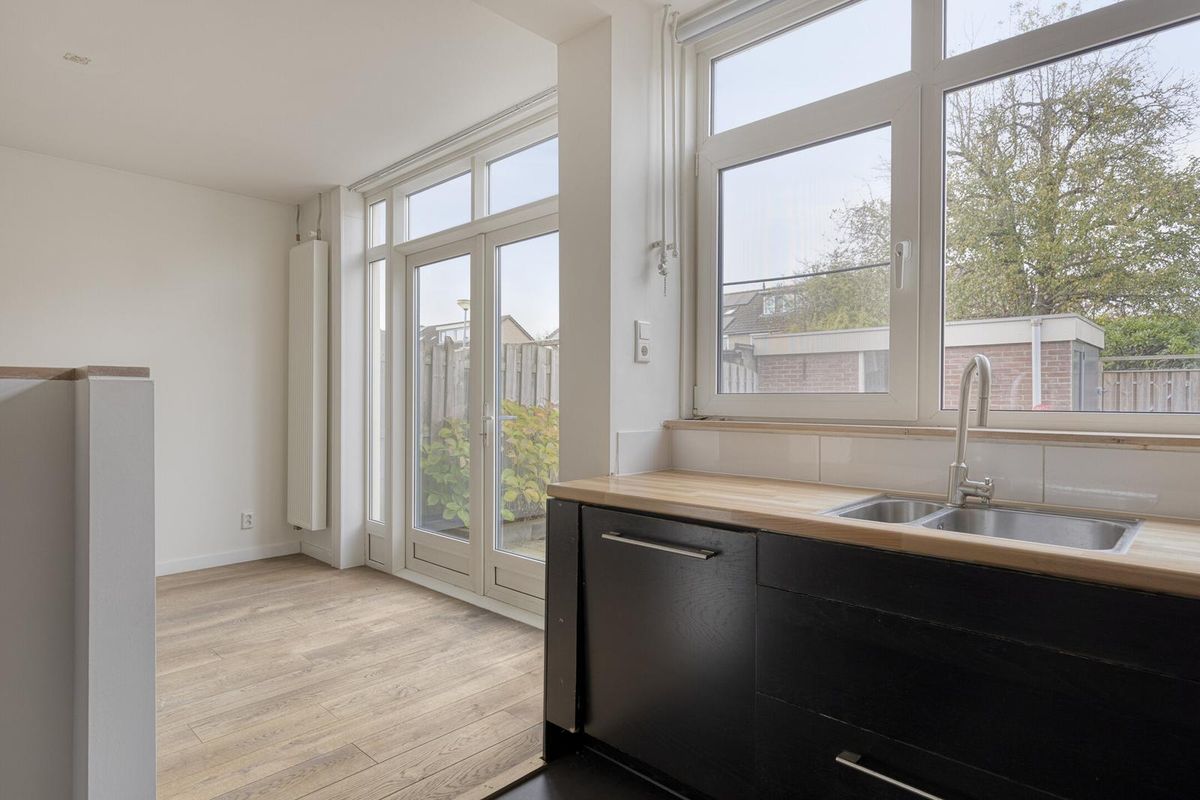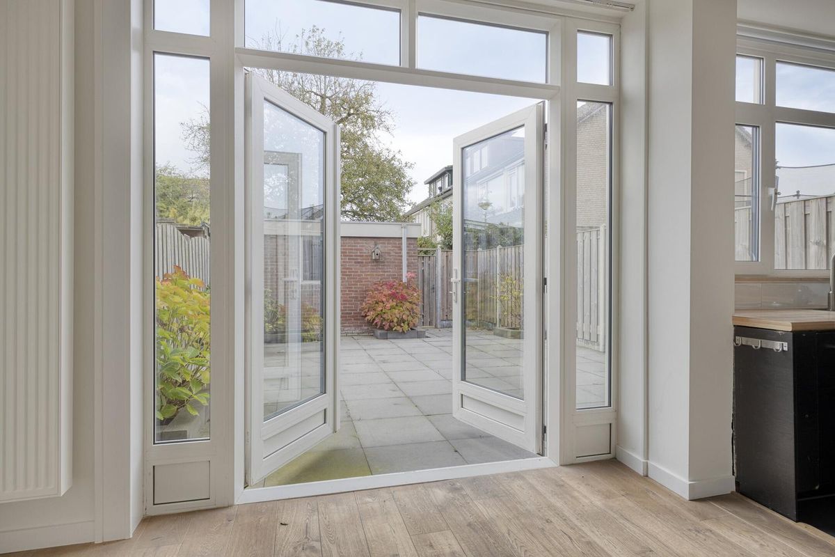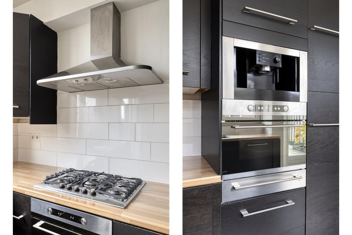 Aan de achterzijde van de woning bevindt zich de moderne halfopen keuken, uitgerust met diverse inbouwapparatuur, waaronder een 5-pits gaskookplaat met oven, een RVS afzuigschouw, koel-/vriescombinatie, espressoapparaat, oven/magnetron, warmhoudlade en vaatwasser. Via de openslaande deuren in de woonkamer bereik je de zonnige achtertuin, gelegen op het westen.