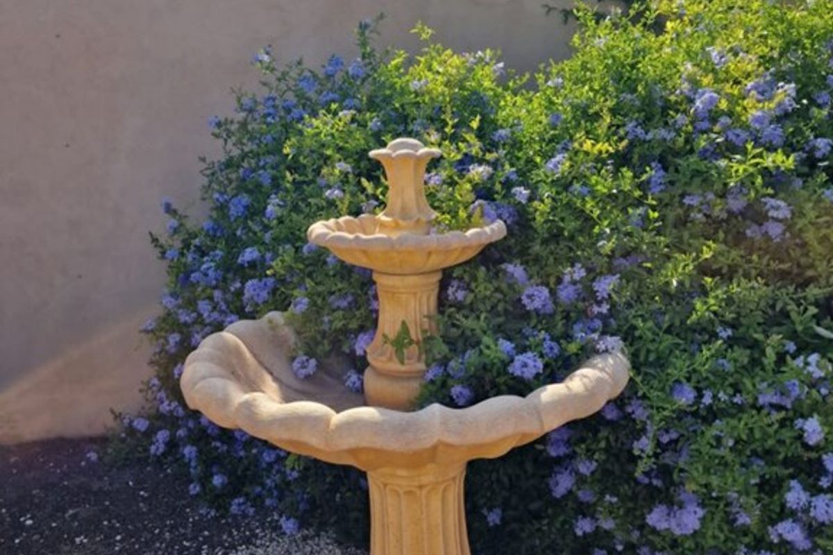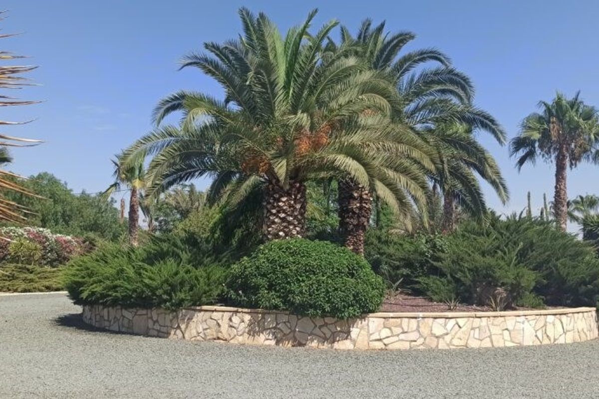 Rondom de woning liggen drie grote terrassen en een goed onderhouden tuin met diverse fruitbomen (onder andere citrus, vijgen, olijven en amandelen). Het zwembad ligt centraal in de tuin en is uitgerust met automatische waterfiltratie. De tuin is volledig omheind en biedt volledige privacy.