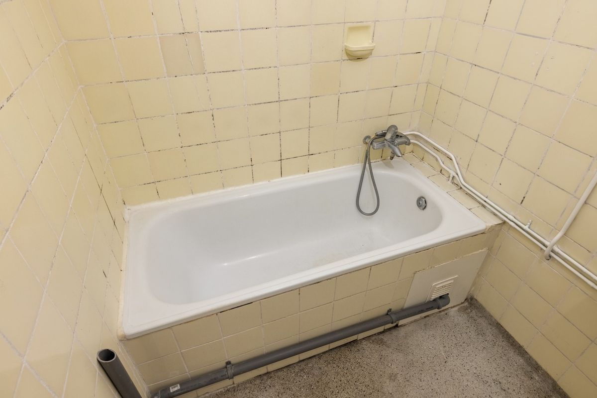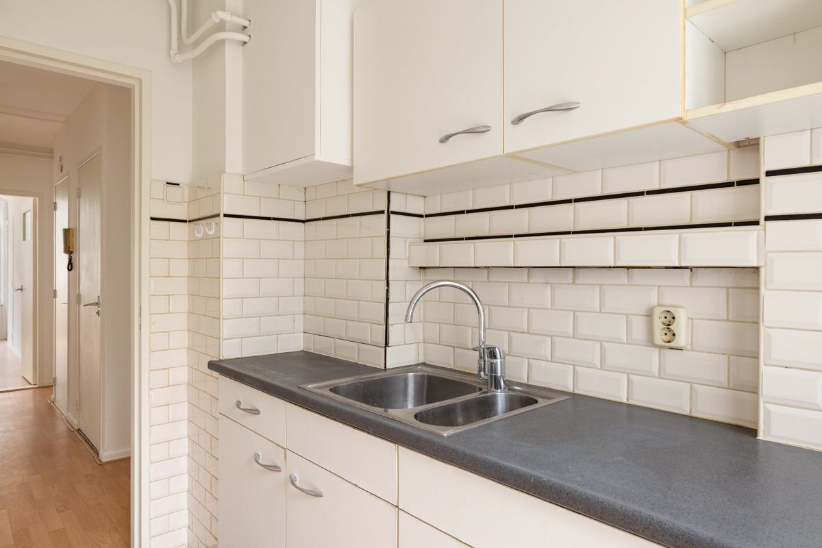 De keuken ligt eveneens aan de achterzijde en is uitgerust met een 4-pits gasfornuis, koelkast en toegang tot het balkon. Hoewel de keuken en badkamer wat verouderd zijn, biedt dit juist een kans om de woning volledig naar eigen smaak te moderniseren.