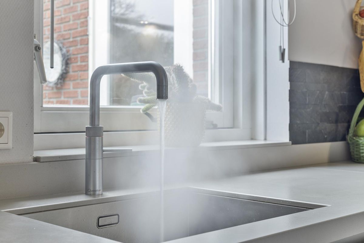 Aan de achterzijde bevindt zich de open keuken, die niet alleen praktisch is ingericht maar ook veel uitstraling heeft. Hier kun je met plezier koken en samen zijn met familie of vrienden. De keuken is voorzien van moderne inbouwapparatuur, waaronder een vaatwasser, combi-oven, inductiekookplaat, afzuigkap, koel-vriescombinatie en een handige Quooker. Alles binnen handbereik, ideaal voor wie houdt van koken, borrelen en tafelen in goed gezelschap.