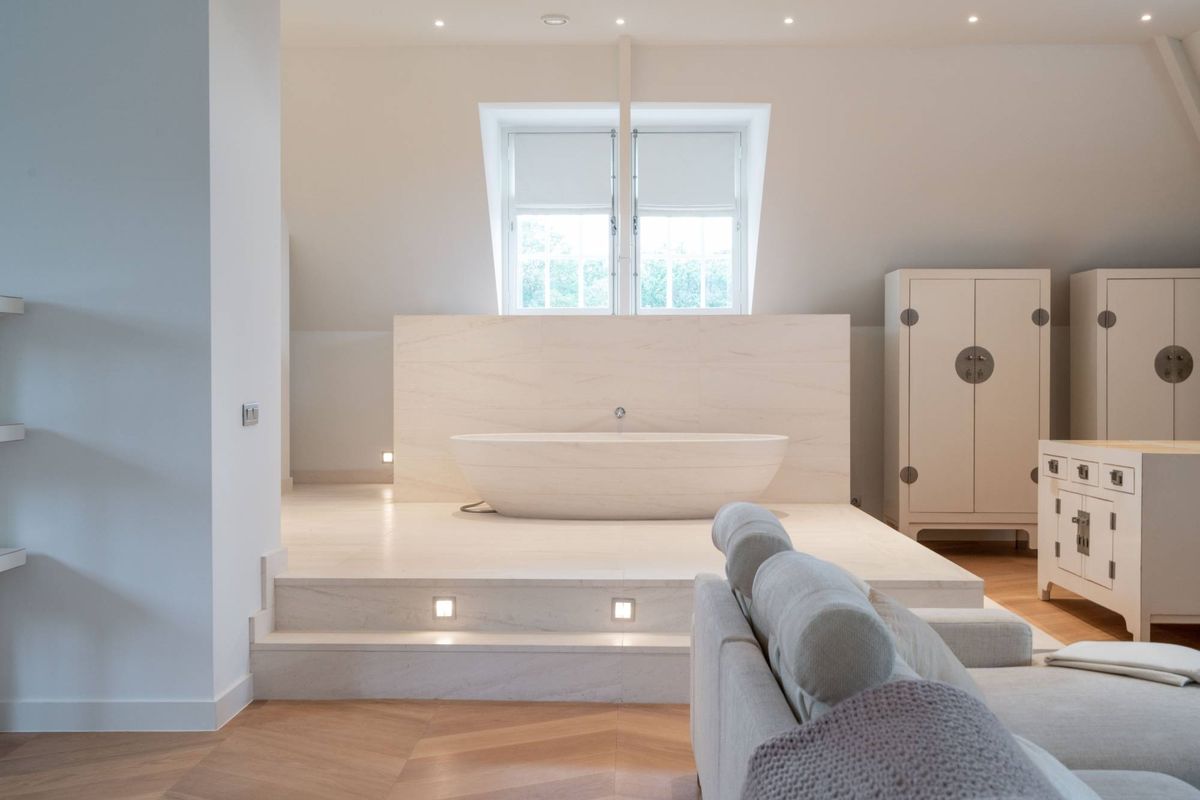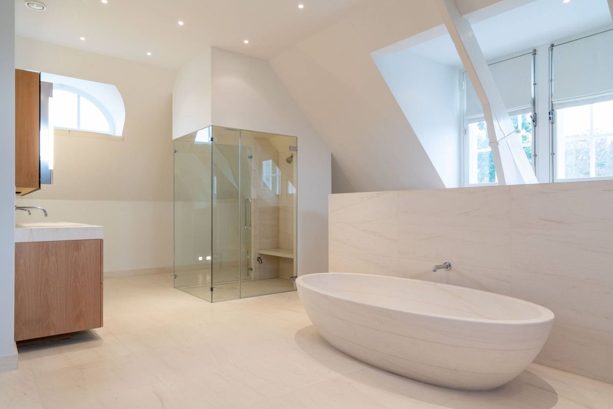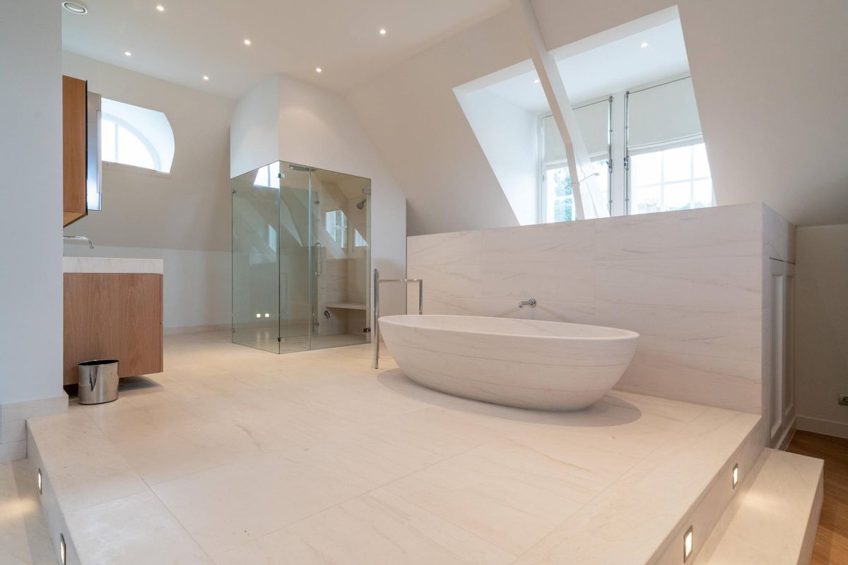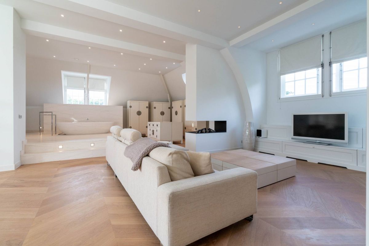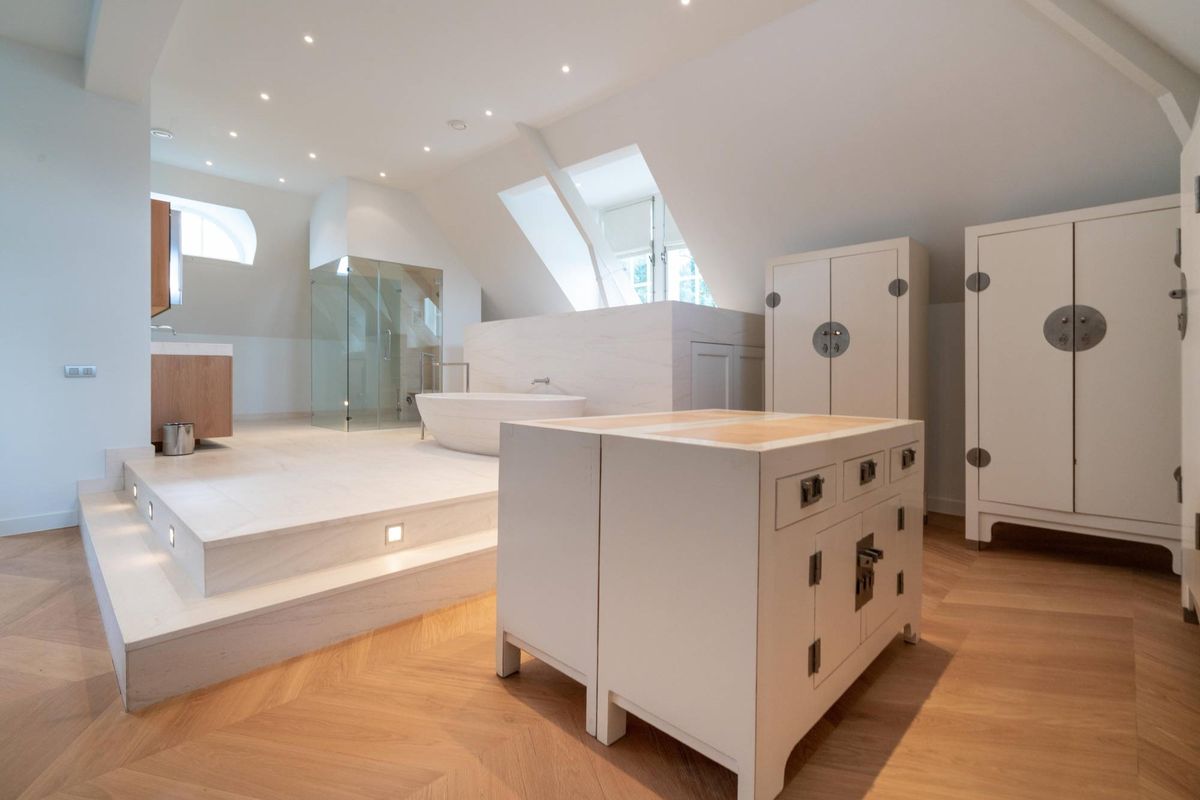 This exceptional unit is situated atop the “Villa Ten Rande”, a monumental villa surrounded by beautiful grounds and set amongst other properties of similar size and grandeur in the embassy district, adjacent to the Peace Palace and Catshuis (a.k.a. the Dutch White House). The lower floors of this magnificent historic building are used as office space.