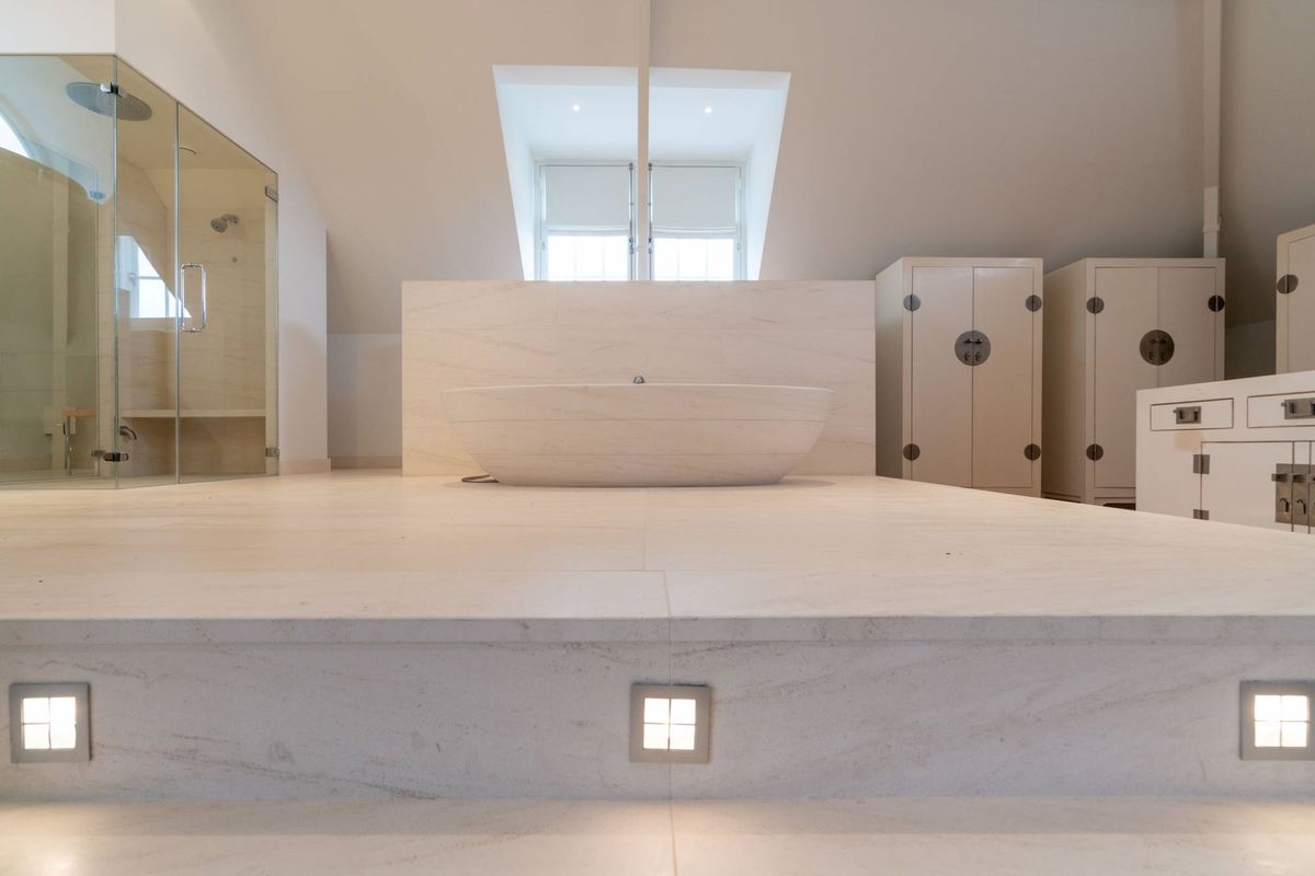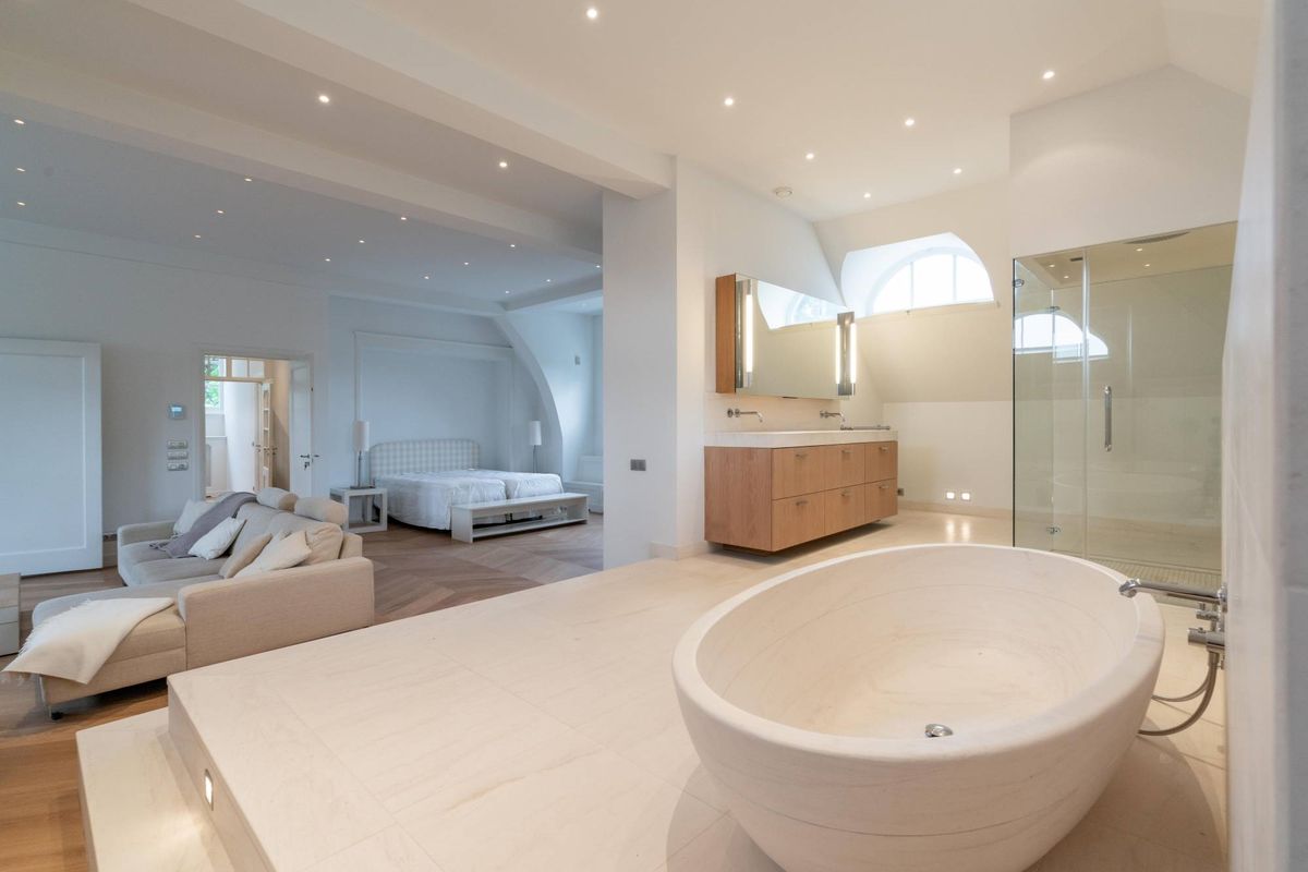 This exquisite, exceptionally bright penthouse exudes luxury throughout. The living room, sleeping area, and lavish bathroom are set in a loft-like open plan design, which also encompasses a well-equipped kitchenette, a separate lavatory, storage space, and a laundry/dressing room.