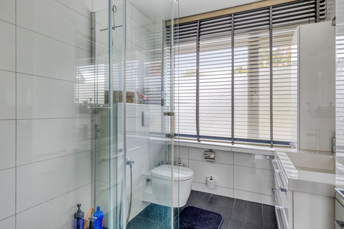 De overloop biedt toegang tot drie slaapkamers en een moderne badkamer, voorzien van douchecabine, hangend toilet en wastafelmeubel.
