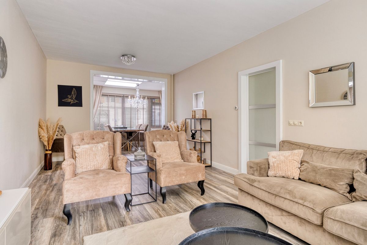• Sfeervolle uitgebouwde woonkamer met lichtkoepel en schuifpui