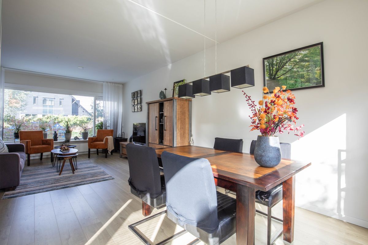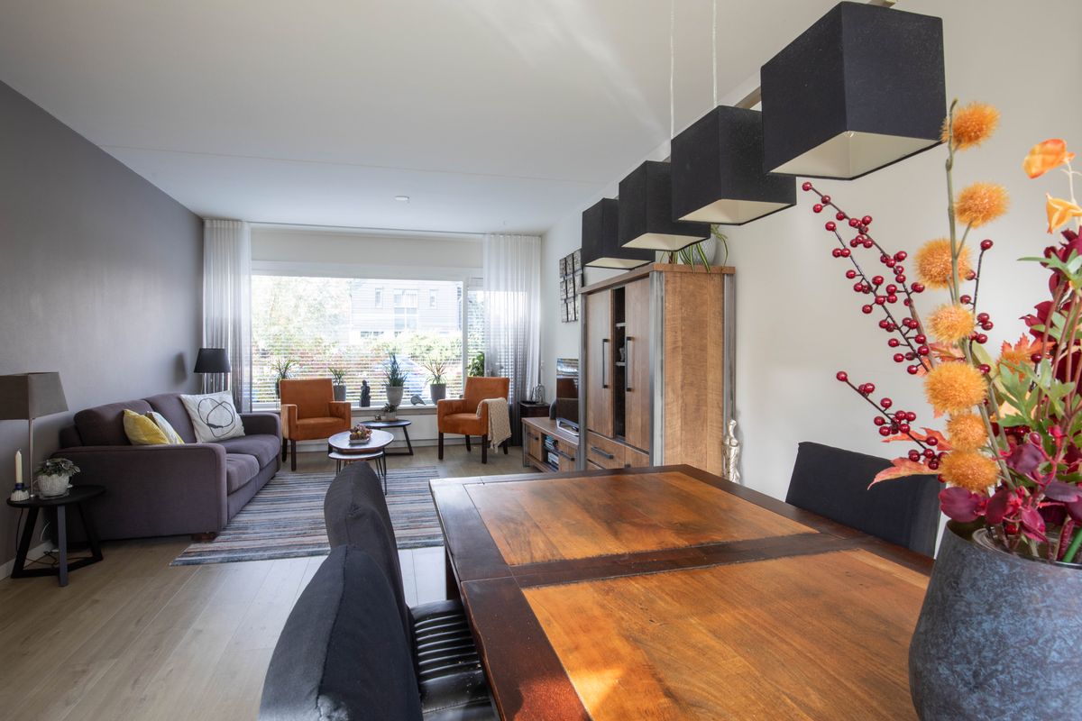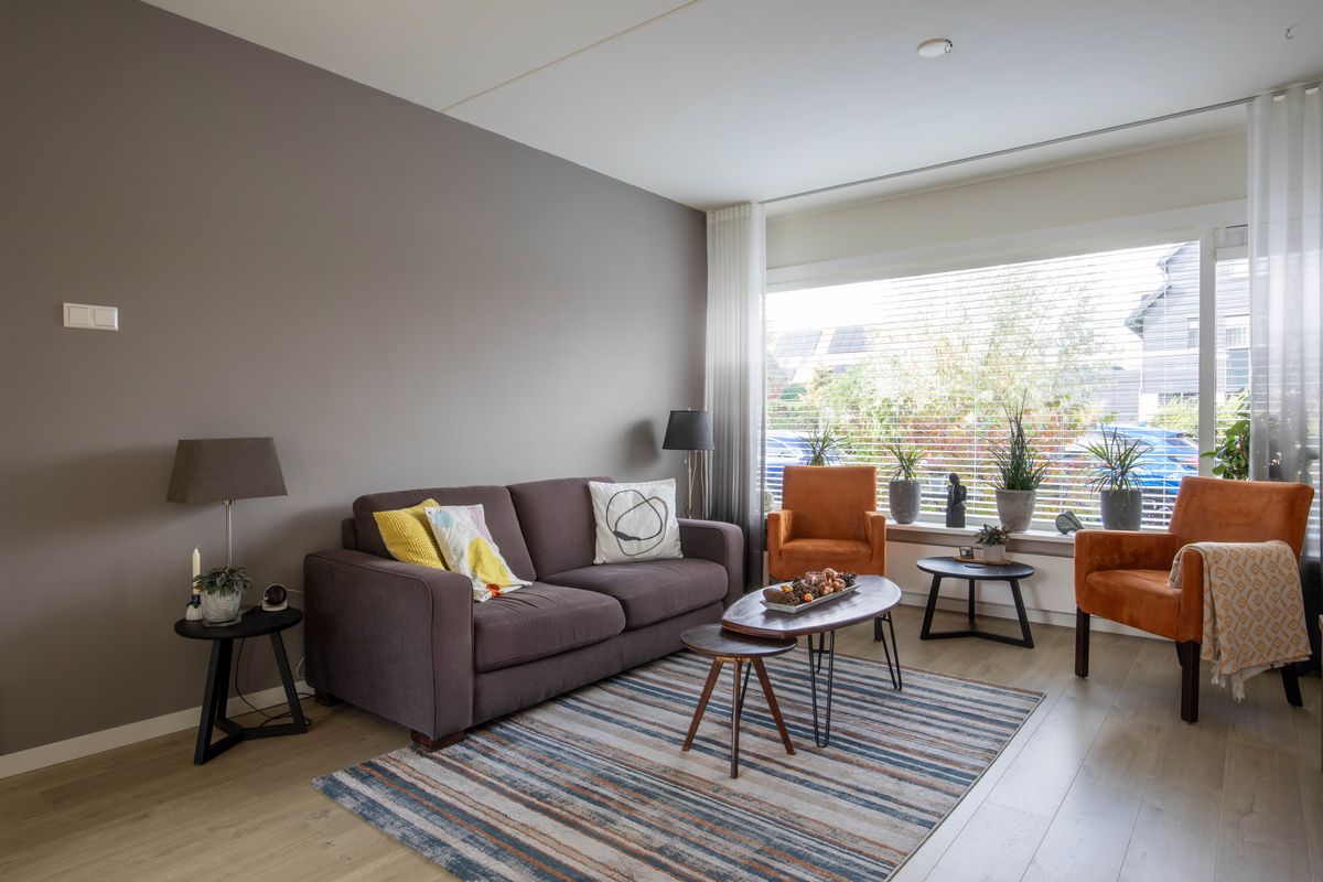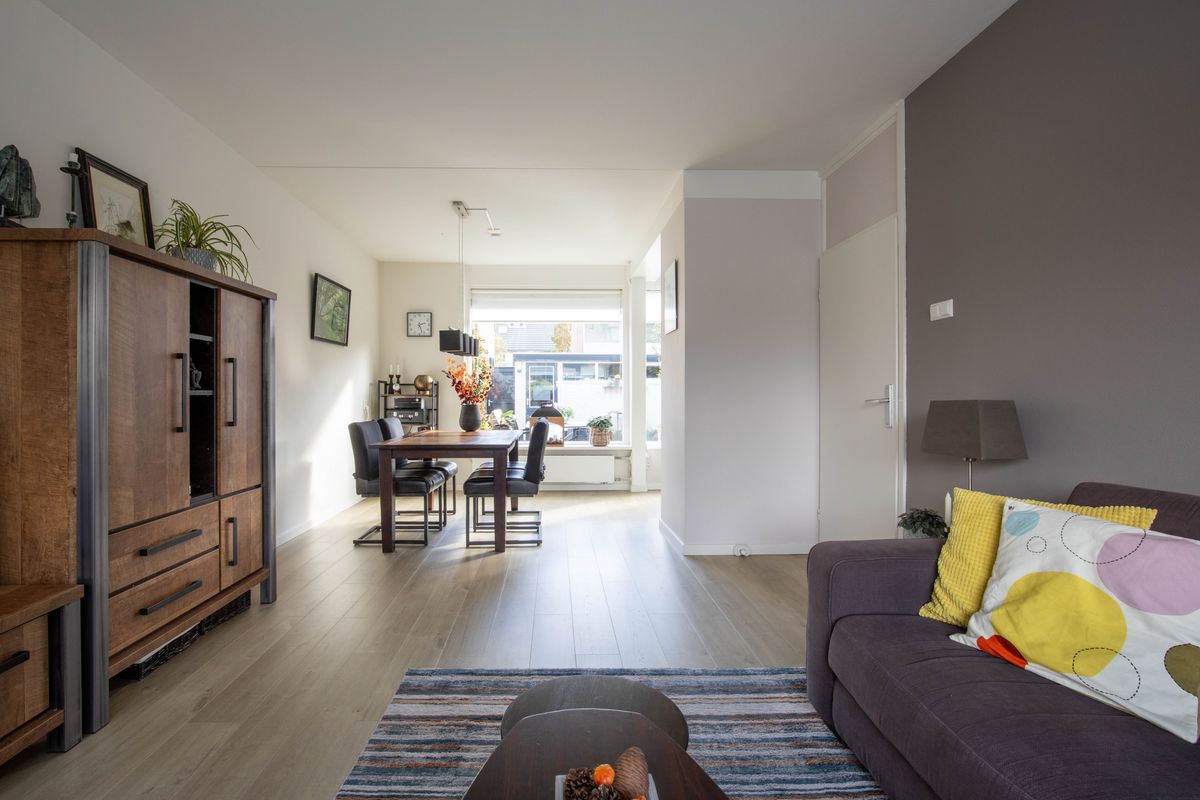 Bij binnenkomst treft u een ruime entree met de meterkast, het toilet met fonteintje, toegang tot de woonkamer en de trap naar de eerste verdieping. De doorzonwoonkamer heeft een prettig formaat en geniet van veel lichtinval dankzij de grote raampartijen. De zonwering aan de achterzijde beslaat de volledige breedte van de woning, wel zo prettig op de warme dagen.