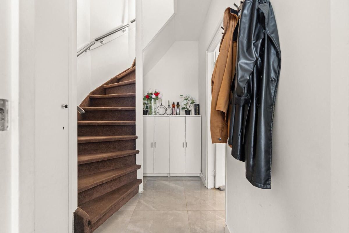 - Entree: Lichte en modern afgewerkte hal met strak gestucte wanden en een nette tegelvloer. De trap naar de bovenverdieping bevindt zich in de hal en er is tevens toegang tot de woonkamer.