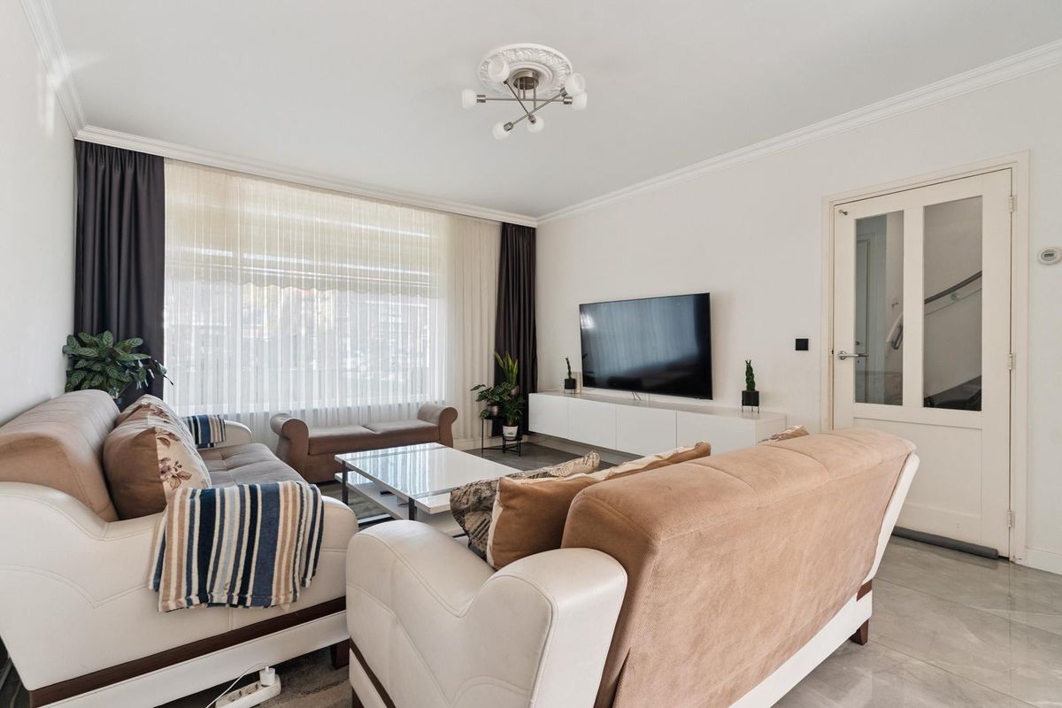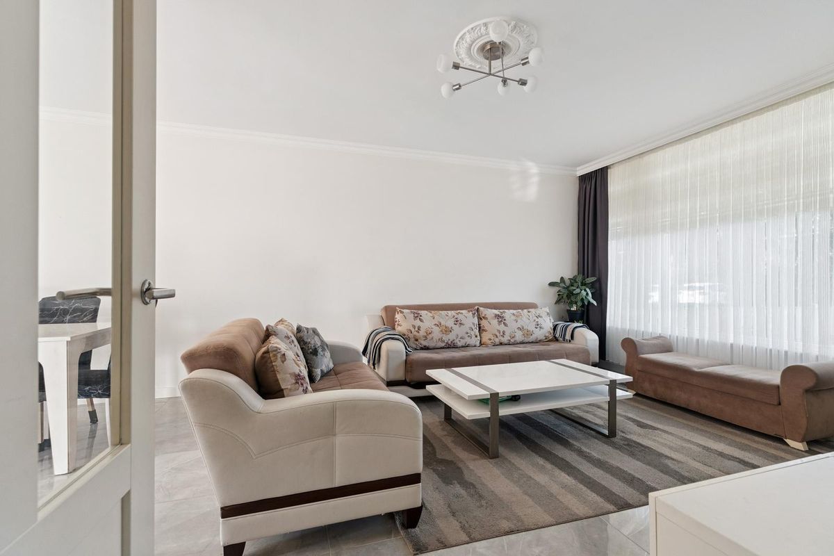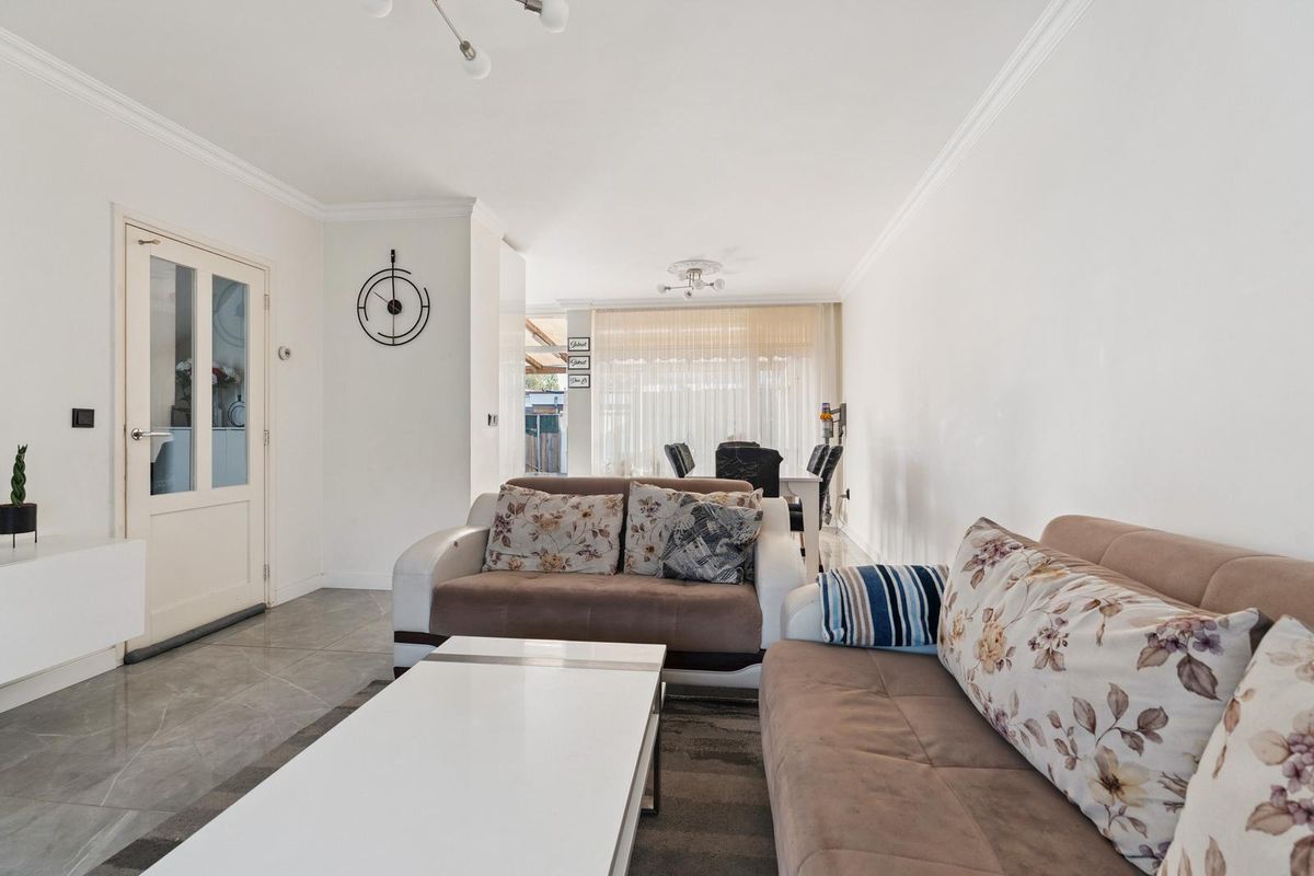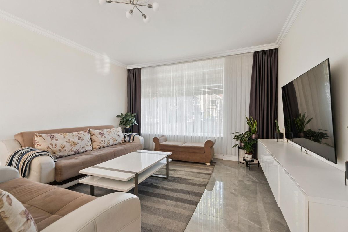 - Woonkamer: De sfeervolle woonkamer heeft een strakke tegelvloer en licht afgewerkte wanden, wat zorgt voor een frisse en moderne uitstraling. Het grote raam brengt veel daglicht binnen. De woonkamer loopt door in de open keuken en biedt daarnaast directe toegang tot de achtertuin.