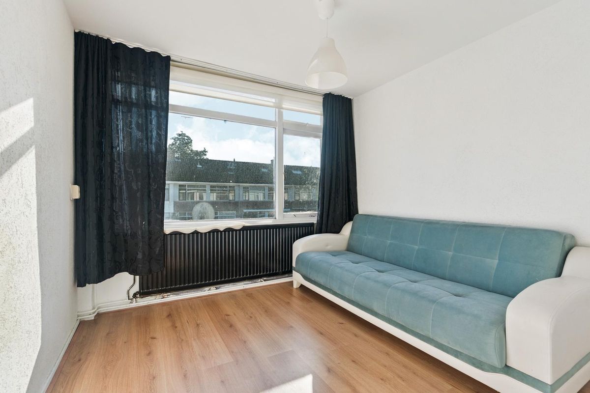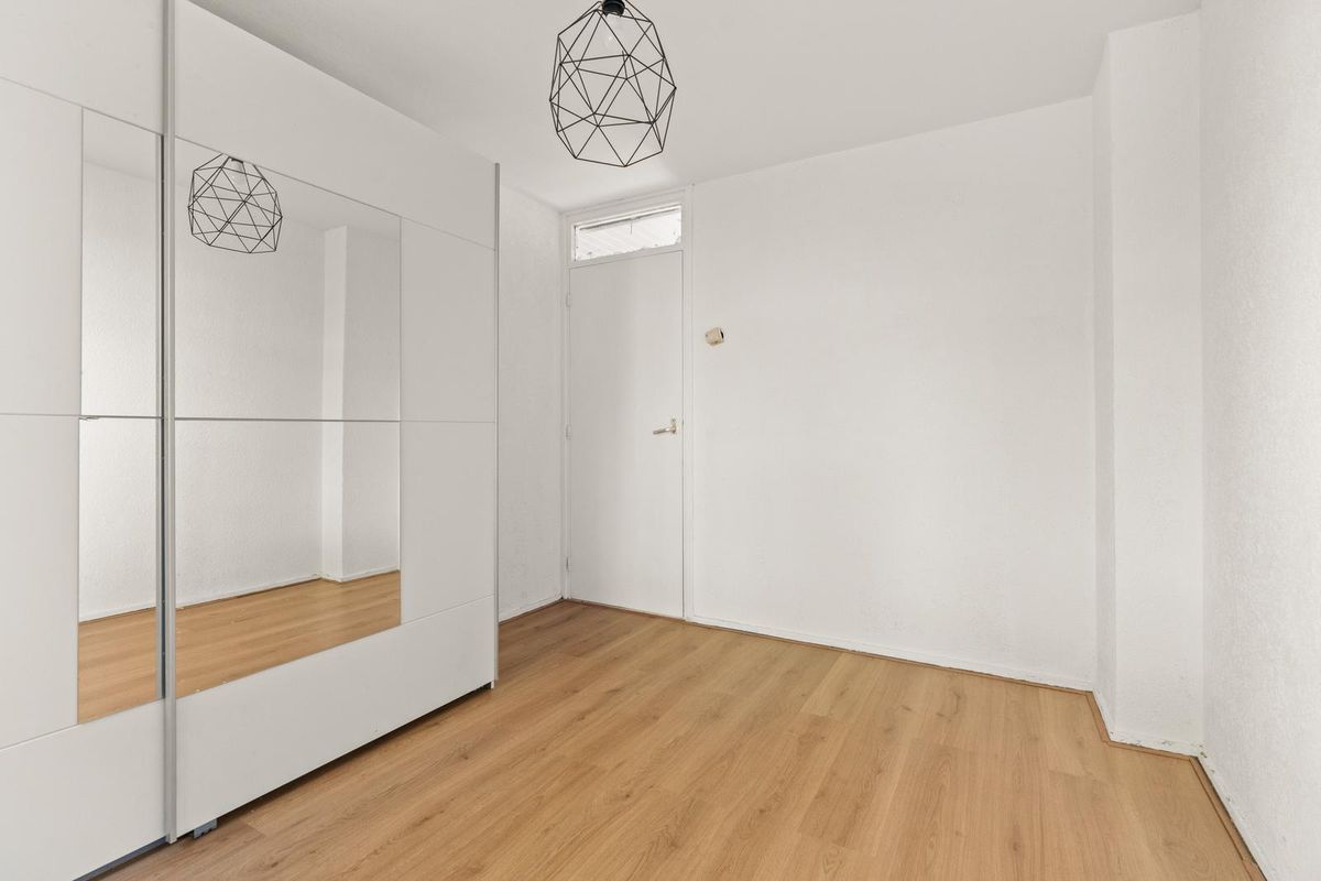 -Slaapkamer I: Gelegen aan de voorzijde van de woning en voorzien van een grote raampartij, waardoor er veel daglicht binnenkomt. De kamer is afgewerkt met een nette laminaatvloer en lichtgekleurde wanden, wat zorgt voor een frisse en rustige uitstraling.
