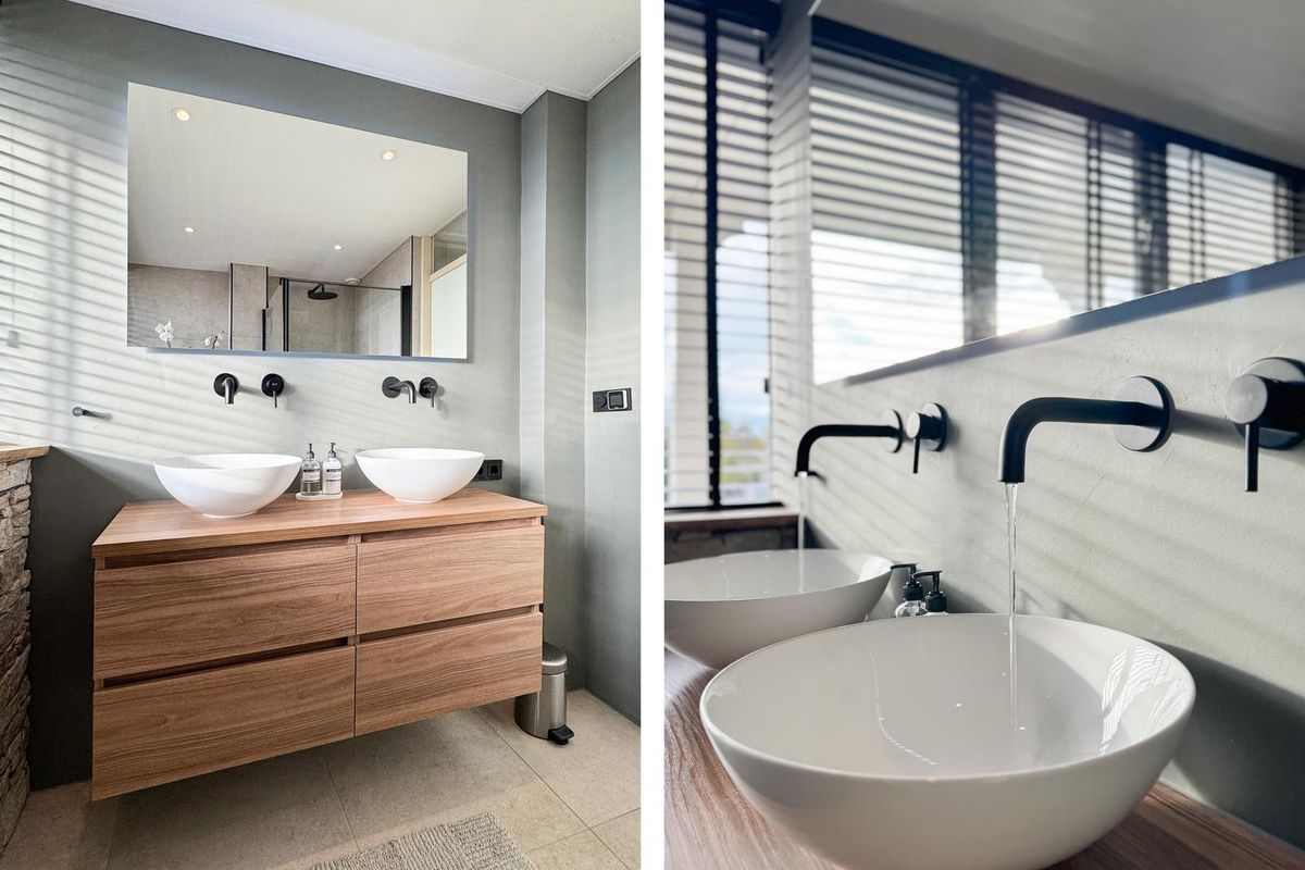 Overloop met vaste trap naar de 2e verdieping, 3 ruime slaapkamers – waarvan één met deur naar het balkon aan de voorzijde (ca. 8 m², gelegen op het westen). De badkamer is in 2024 volledig vernieuwd en modern uitgevoerd met een stijlvol wastafelmeubel met twee ronde kommen, ingebouwde zwarte kranen, verlichte spiegel, douche met regendouche en ingebouwde thermostaatkraan, en een hangtoilet.