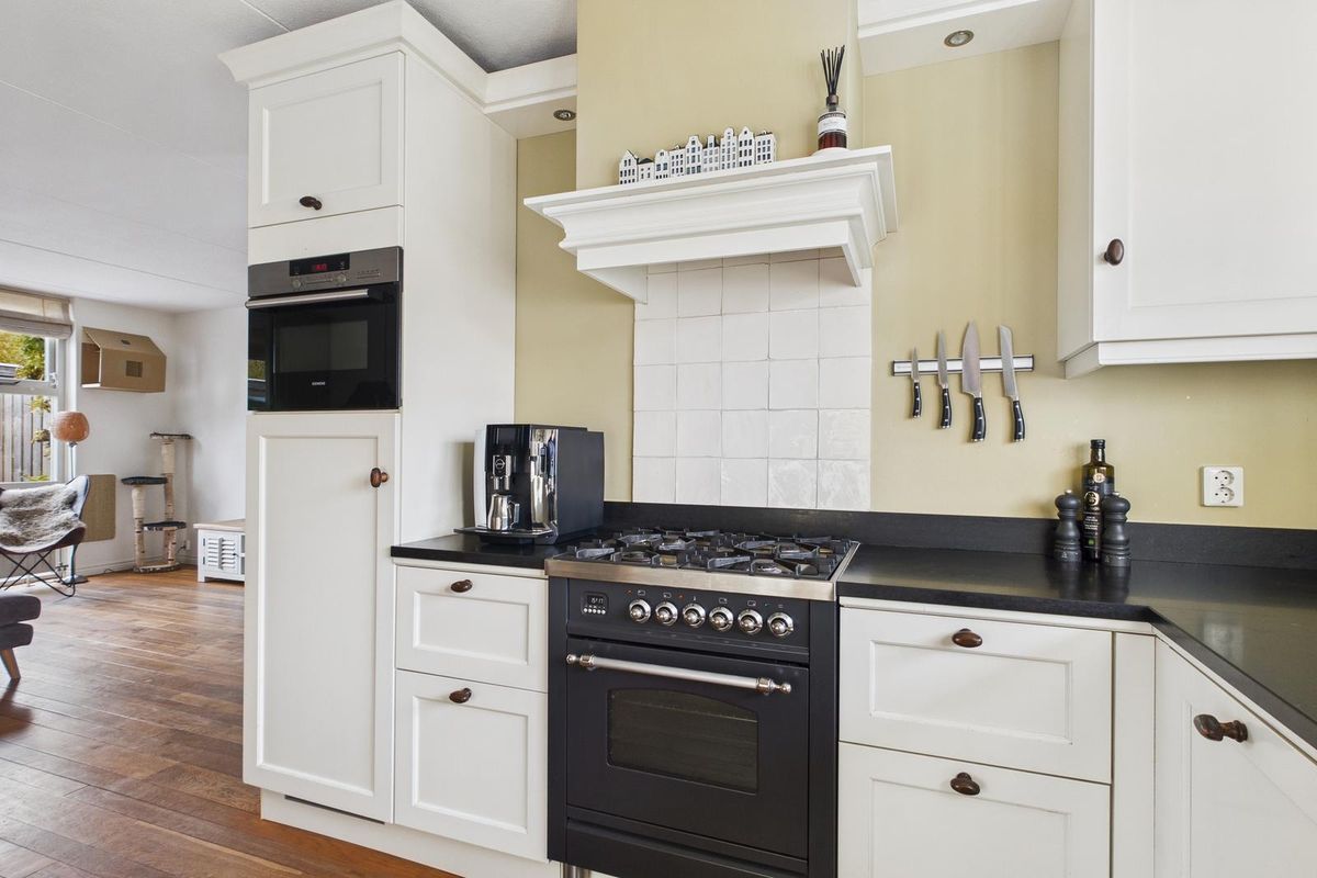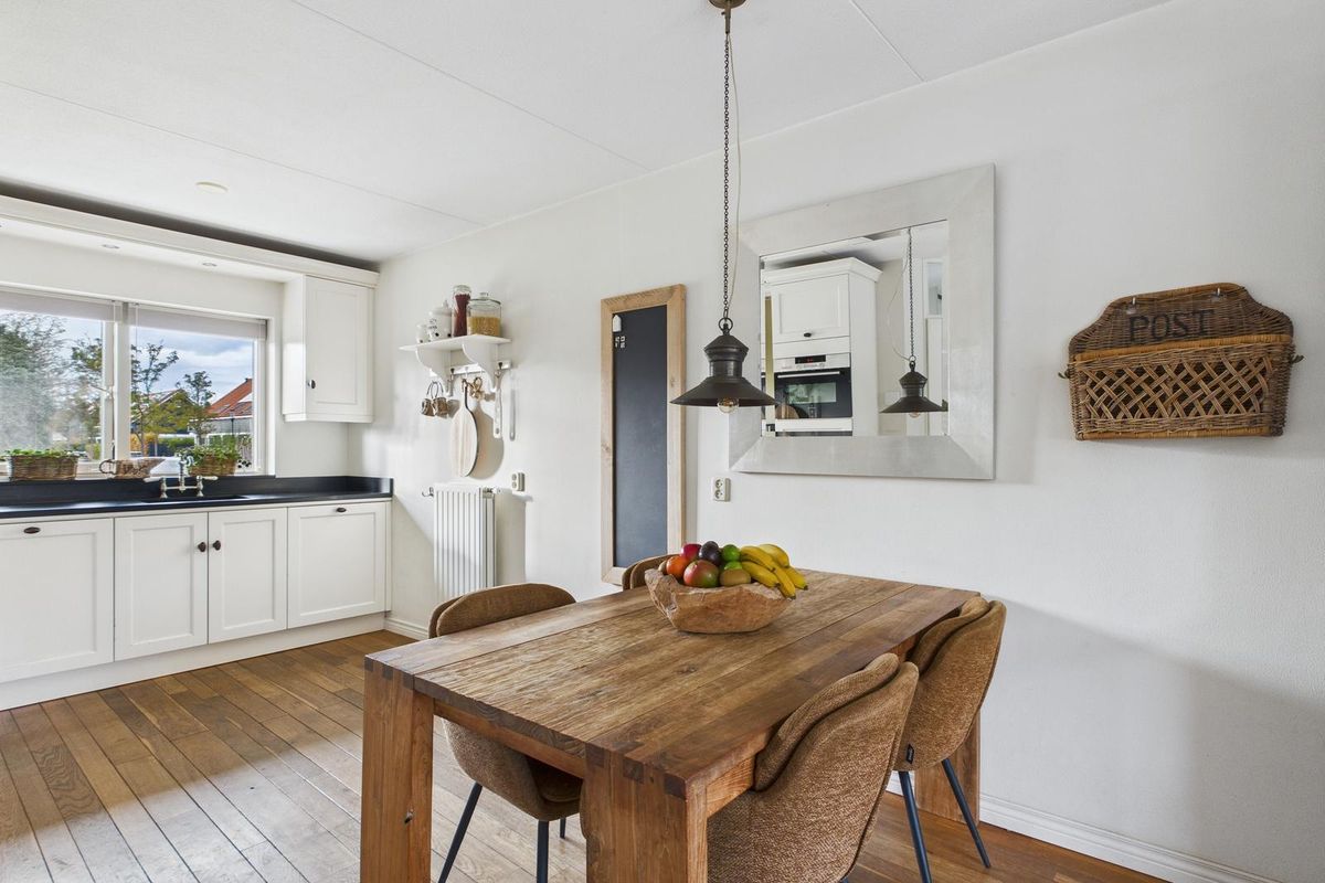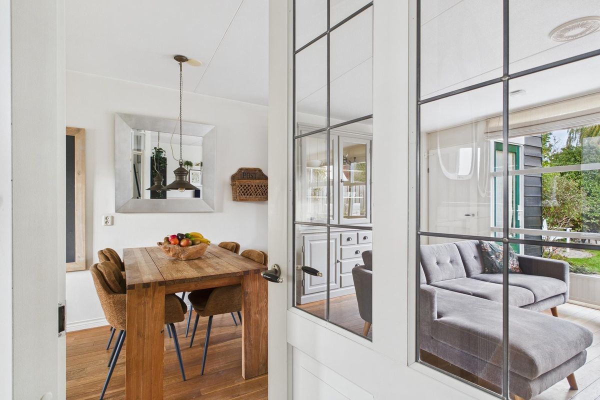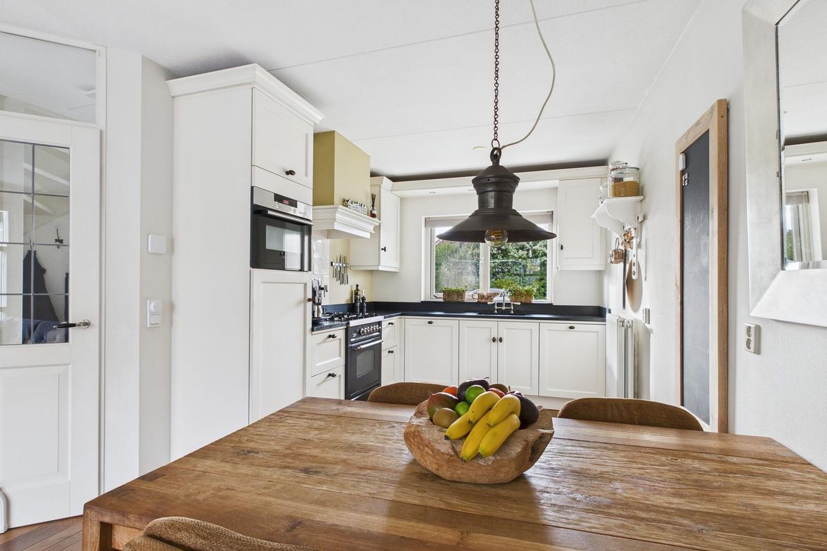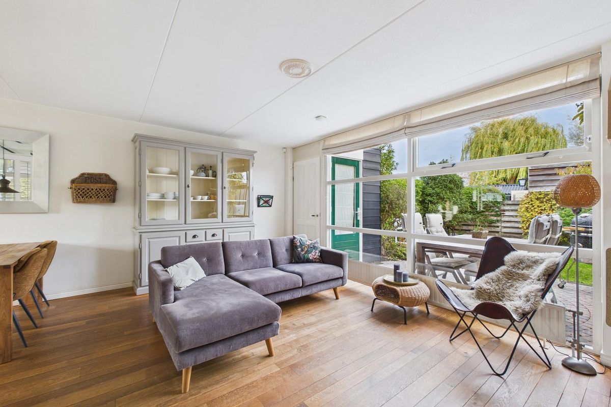 Entree met ruime hal, meterkast, modern toilet (vernieuwd in 2024), open trap en voldoende plek voor de garderobe. De woonkamer is licht en ruim (ca. 25 m²) dankzij de grote glazen pui met zicht op de achtertuin. Aan de voorzijde bevindt zich de open keuken in witte hoekopstelling, voorzien van gasfornuis met oven, afzuigkap, vaatwasser, koelkast en combimagnetron. Achter in de woonkamer is een tochtportaal met tuindeur naar het terras.