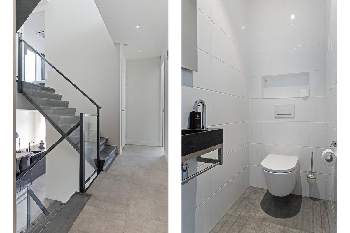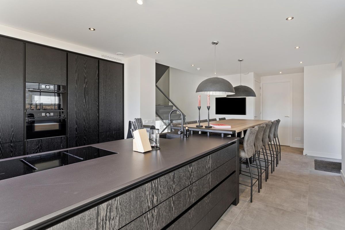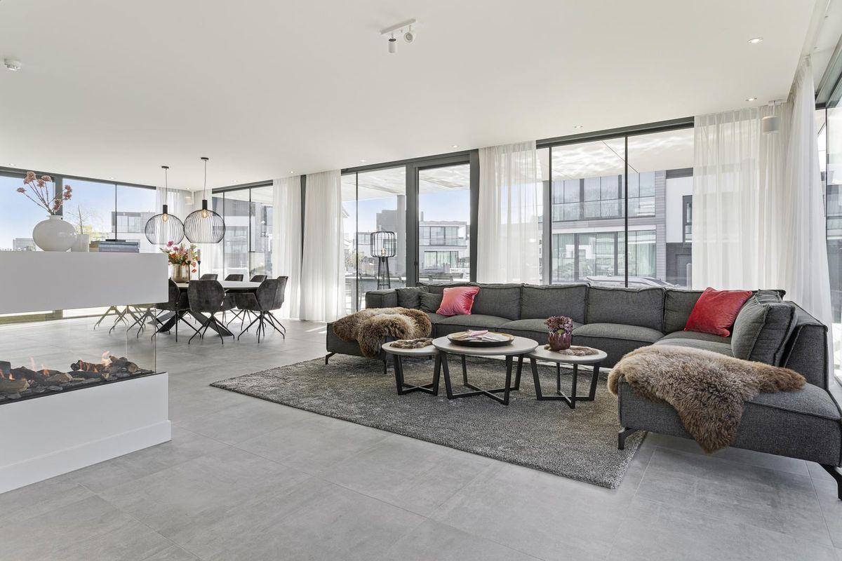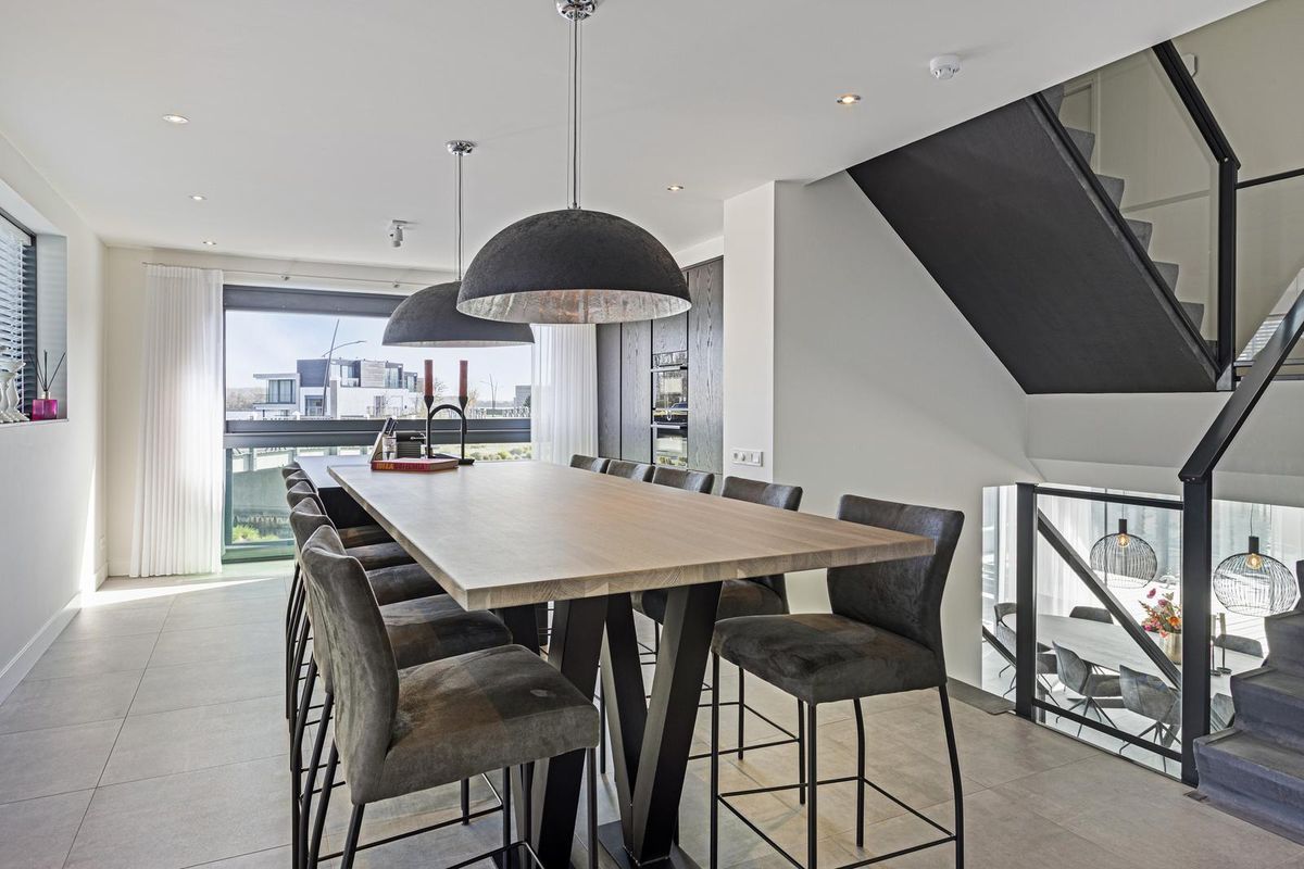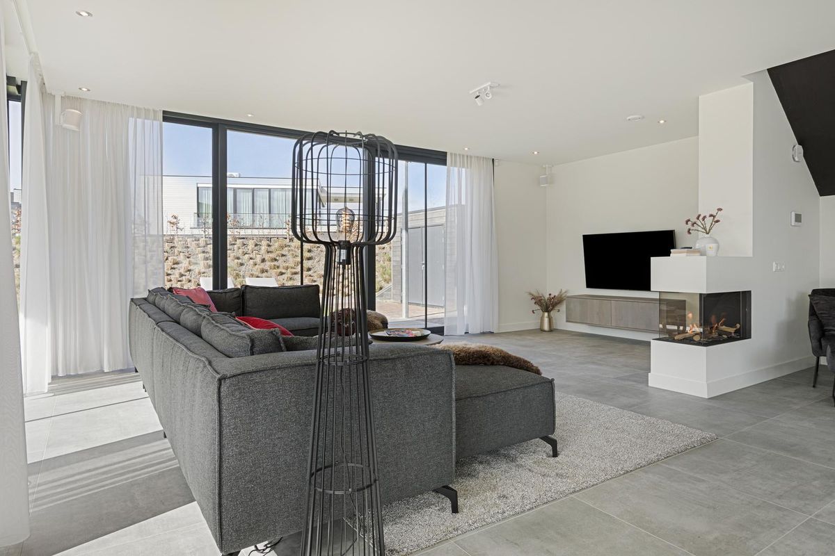 De sfeervolle living biedt een royale zithoek met haard en een op maat gemaakte eettafel voor twaalf personen. De wijnklimaatkast staat al klaar voor gezellige avonden. Via de schuifpui bereikt u het overdekte terras met heaters en de royale terras-steiger: een plek om te loungen, te dineren of direct een duik te nemen via de zwemtrap. Ook is er een buitendouche, extra berging en toegang tot het inpandige boothuis. Aan de andere kant van de villa ligt een zonnige tuin met terras, loungehoek en een geïsoleerde berging in de stijl van de villa, perfect voor fietsen, supboards of tuinmeubilair.