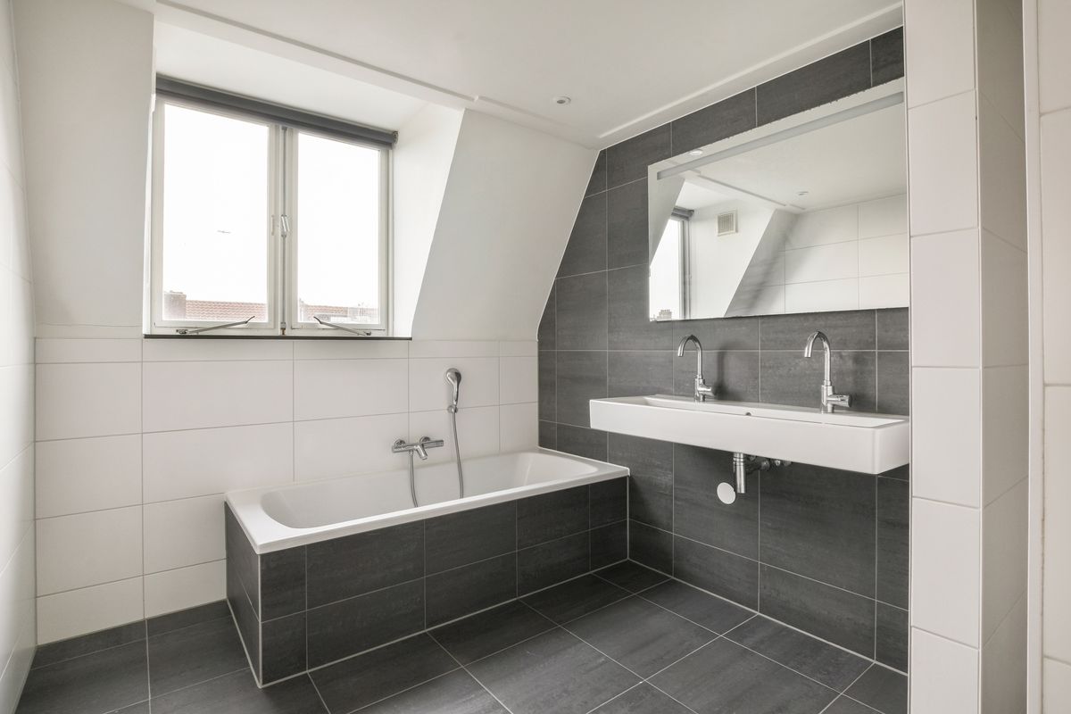 Via de hal zijn beide slaapkamers bereikbaar. De grootste slaapkamer ligt aan de voorzijde van de woning, terwijl de tweede slaapkamer zich aan de achterzijde bevindt. De badkamer is voorzien van een inloopdouche, ligbad en dubbele wastafel. Daarnaast is er een separaat toilet aanwezig in de hal. Via de interne trap kom je op het dakterras.