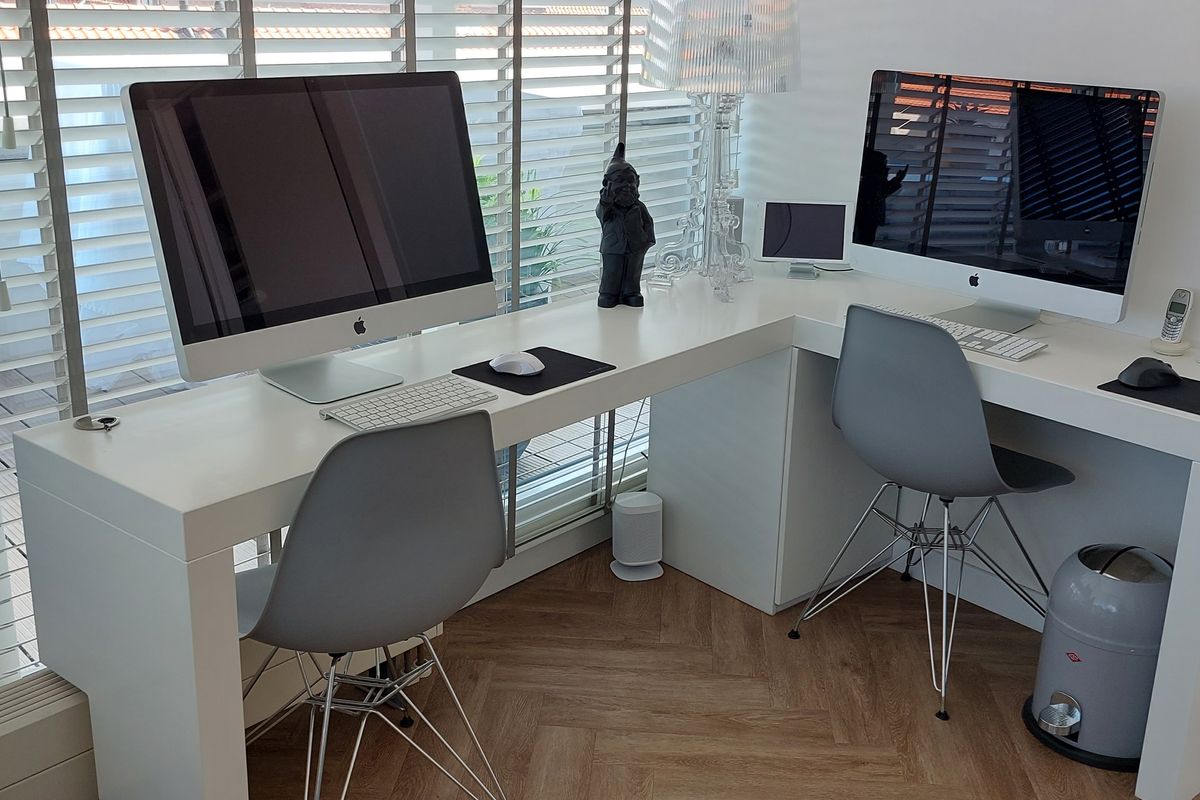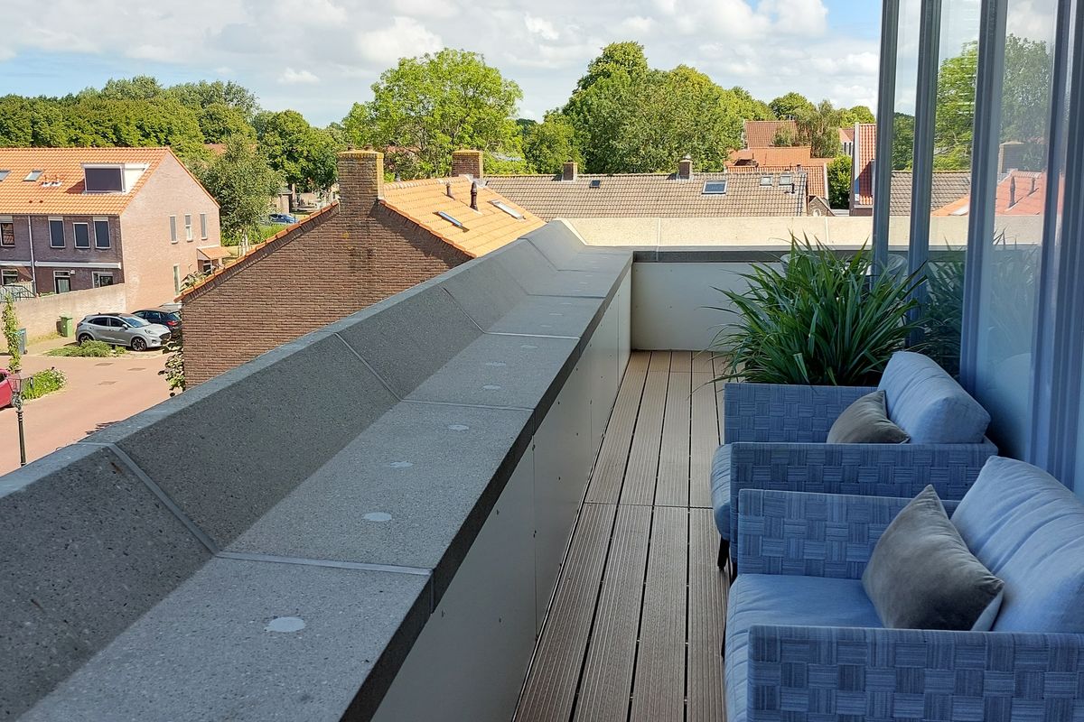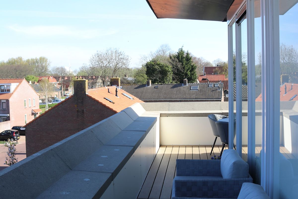 The 3-room apartment is located on the 1st floor and offers a beautiful view over the historic town of Brielle. The apartment consists of a hall, toilet, living room and open kitchen on the first floor. On the 2nd floor are 2 spacious rooms, a beautifully renovated bathroom and a beautiful terrace around the bedrooms. The spacious living room is modernly furnished and equipped with a PVC herringbone floor. The luxurious open kitchen in L arrangement is equipped with all modern conveniences such as; dishwasher, fridge-freezer, combi oven, extractor hood. The master bedroom is equipped with a 2-person Auping box spring, 55-inch flat screen TV and a door to the terrace. The 2nd room is used as an office and equipped with 2 IMAC computers, fixed cupboard wall and also a door to the terrace. The washing machine and dryer are located on the landing, as well as the wine climate cabinet. The beautiful luxury bathroom has a walk-in shower, 2nd hanging toilet, 2 sinks and a design radiator. The terrace is equipped with plants, garden sets and offers a great view over Brielle.