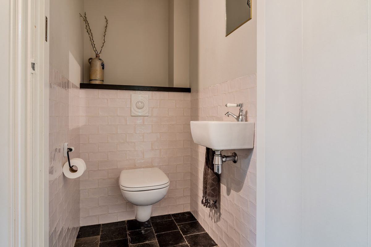 * Keuken, gang, werkkamer, beide toiletten en badkamer voorzien van een hardstenen vloer met vloerverwarming