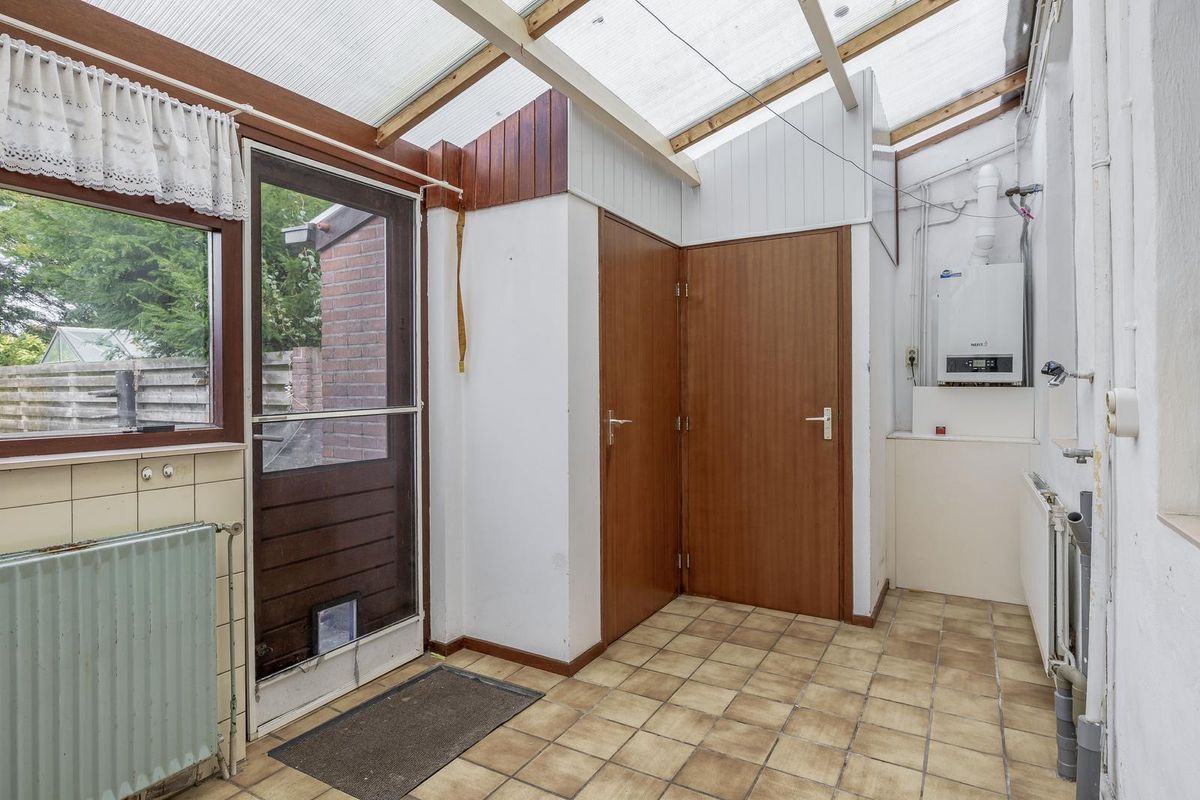 De achtertuin is diep en biedt volop mogelijkheden. Achter op het perceel staat een vrijstaande garage/berging van circa 30 m2 met eigen oprit, bereikbaar via de achterzijde.