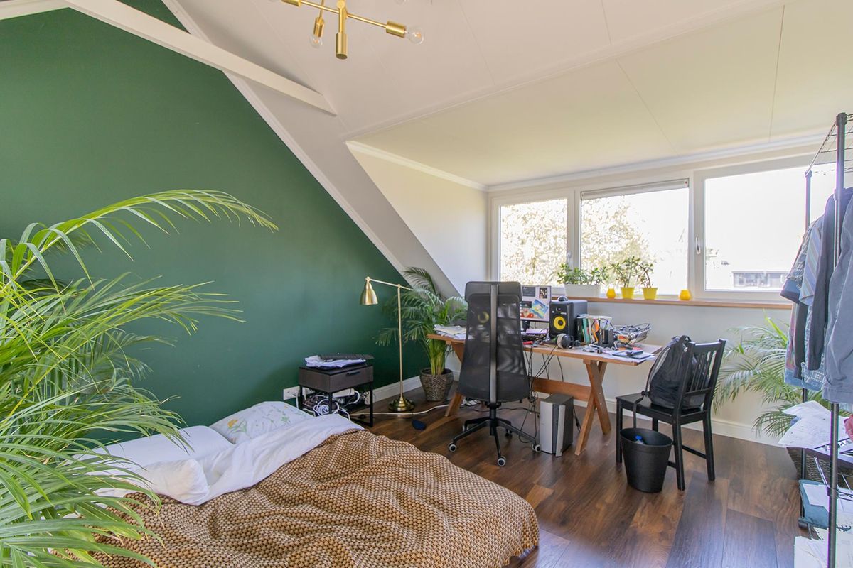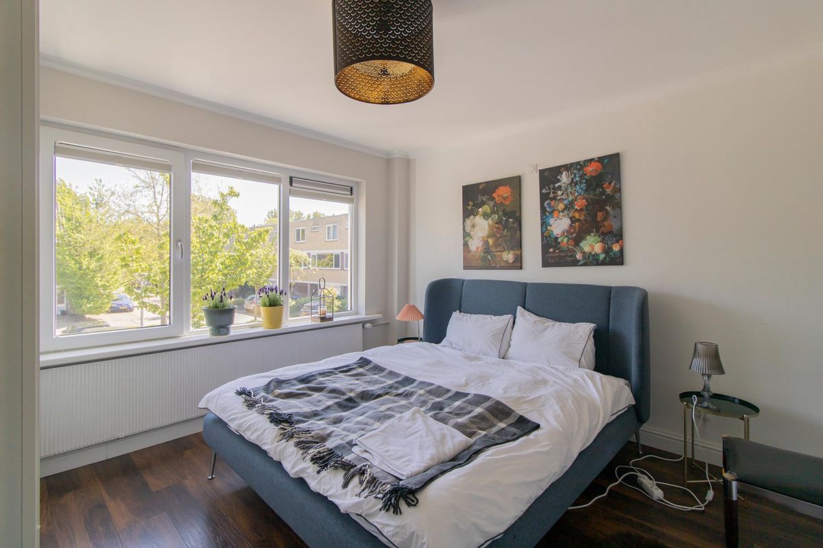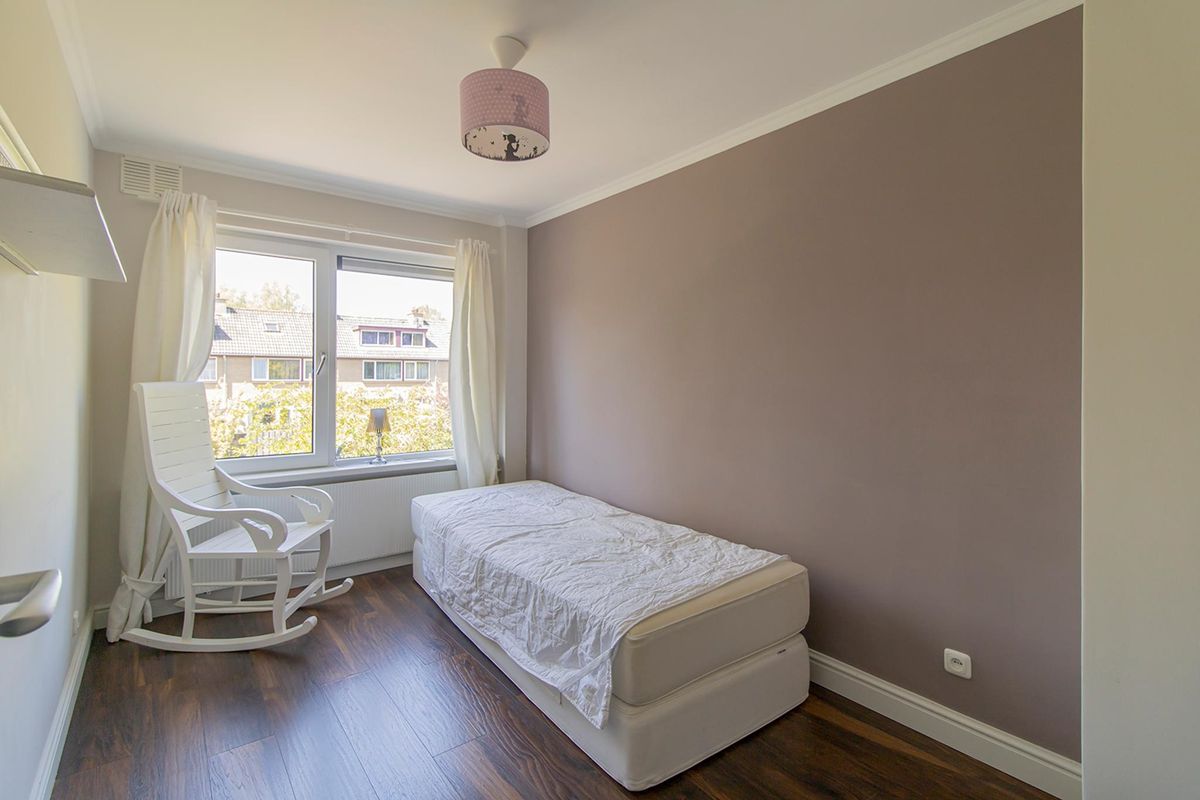 Terraced house with 2 floors from the 1970s in a child-friendly residential area "Groenelaan". The house is in a beautiful location on the edge of Amstelveen, on a residential area with no through traffic. In addition to the front door, the house also has a separate door for the storage room in which bicycles and other objects can be stored. It also has its own driveway where a car can be parked. The living room is accessible through the entrance/hallway. The entrance/hall also provides access to a separate toilet and the storage room. At the front of the house is the open kitchen with an induction plate, dishwasher, extractor hood and a combi oven. At the rear of the house is the spacious living room with access to the south-facing garden. The first floor is accessible via the fixed spiral staircase. The first floor has 3 bedrooms and the bathroom. The master bedroom is located at the rear and has a double bed, sofa and a spacious wardrobe. The second bedroom is located at the front and has a double bed and a wardrobe. The third bedroom is furnished with a single bed and a wardrobe. The spacious bathroom has a bath with shower, extra toilet and a washbasin with a washbasin. The attic has two bedrooms. The master bedroom is ideal for guests and the second room can serve as a work/study room. The house is in a beautiful location on the edge of Amstelveen, on a residential area with no through traffic. The popular residential area "Groenelaan" borders the recreational area of ??the Bovenkerkerpolder, where you can enjoy walking and cycling. The house is located on the edge of the residential area, near the Golf Amsteldijk golf course: within 200 meters of walking or cycling you are already in the middle of the polder. Also within walking distance is the recently renovated Groenhof shopping center (with several supermarkets, including Albert Heijn). There are several schools in the vicinity, including the International School of Amsterdam. The city center of Amstelveen is only a few minutes' drive away. The house is easily accessible by both car and public transport. Near highways A9 (including to Schiphol), A10 and A2 and the Beneluxbaan in the direction of Amsterdam-South. You can park in the private driveway and there is plenty of free parking in the immediate vicinity. The property is located within walking distance of various bus connections, including to Amsterdam and Schiphol, and in the vicinity of tram line 25 to Amsterdam-South.