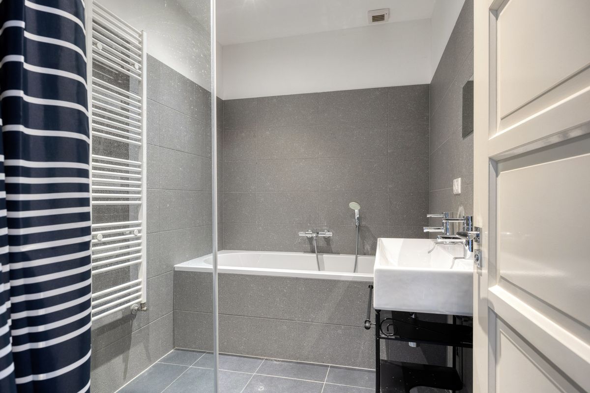 De luxe badkamer beschikt over een ligbad, inloopdouche en wastafel — een hoogwaardige afwerking die zorgt voor dagelijks comfort. De hoofdslaapkamer is ruim en rustig gelegen; de tweede kamer is ideaal als logeer- of werkkamer.