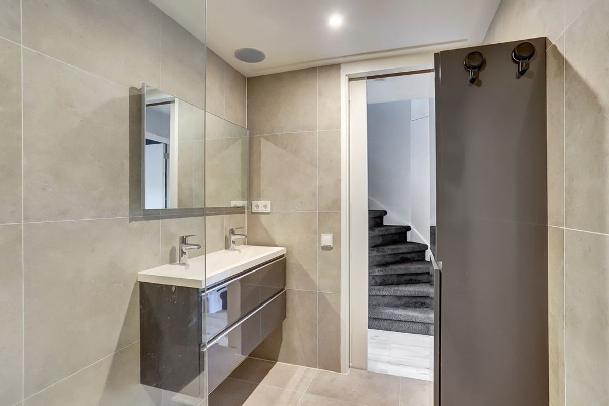 Via de hal met het moderne toilet met fonteintje kom je in de gezellige