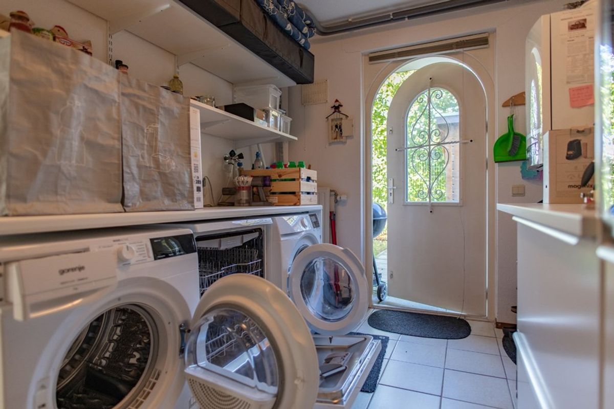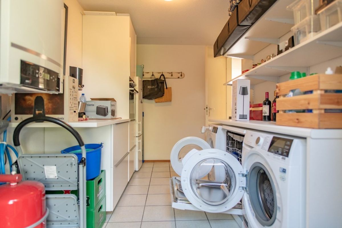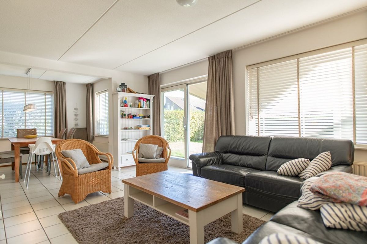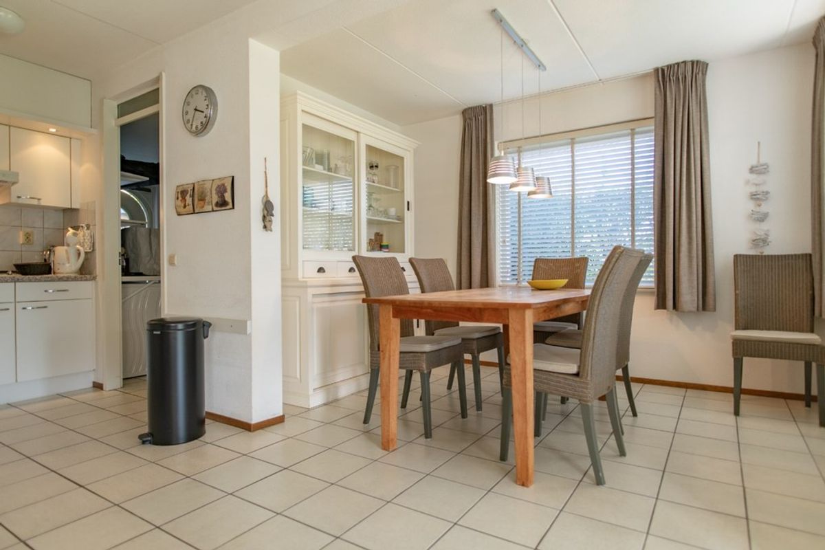 Via de voordeur komt u in de hal met trap naar de 1e verdieping en toegang tot de overige ruimtes op de begane grond. De woonkamer is aangenaam licht door de grote raampartijen. Via een schuifdeur is het terras gelegen op het zuiden te bereiken. Er is een open keuken in hoekopstelling welke is voorzien van; 4-pits gaskookplaat, afzuigkap, spoelbak en koelkast. Annex aan de keuken is er een grote bijkeuken. In deze bijkeuken staat er een koel/vriescombinatie, combi-magnetron, vaatwasmachine, wasmachine en een droger. Verder kan de ruimte nog gebruikt worden als berging voor het opbergen van huishoudelijke spullen en is er een buitendeur naar de achterkant van de woning.
