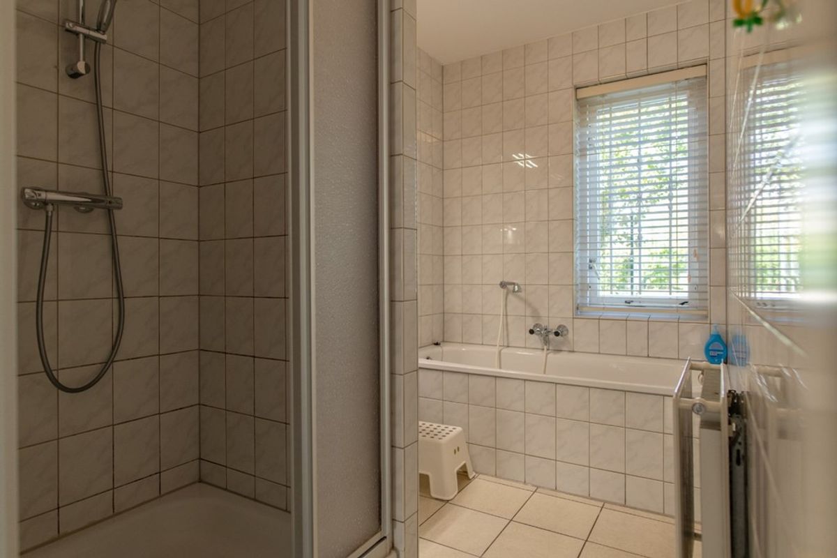 Eveneens op de begane grond; één slaapkamer, een badkamer met ligbad, douche en wastafel en een apart toilet met fonteintje. Hiermee is de woning dus volledig begane grond te bewonen.