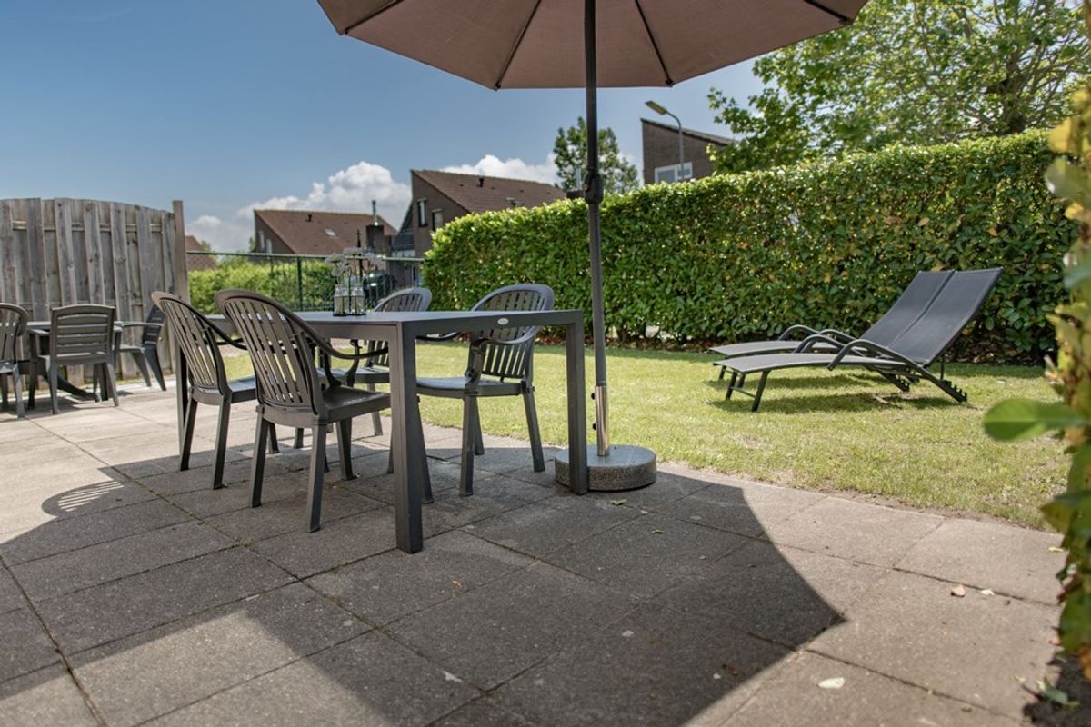 Tuin rondom de woning met terras op het zuiden zodat u zo goed als de hele dag kunt genieten van de zon. Er is een oprit voor de auto en parkeergelegenheid voor meerdere auto’s op eigen terrein aan de zijkant van de woning.
