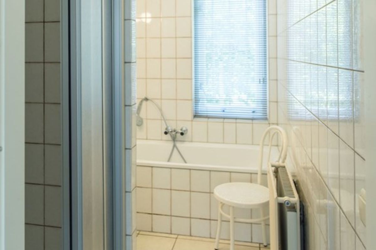 Eveneens op de begane grond; één slaapkamer, een badkamer met ligbad, douche en wastafel en een apart toilet met fonteintje. Hiermee is de woning dus volledig begane grond te bewonen.