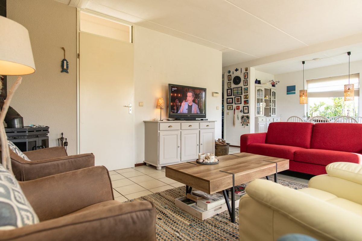 Via de entree komt u in de hal met trapopgang naar de eerste verdieping en toegang tot de overige vertrekken. De lichte woonkamer beschikt over een sfeervolle houtkachel, ideaal voor gezellige avonden. Middels een schuifpui bereikt u het zonnige terras op het zuiden.