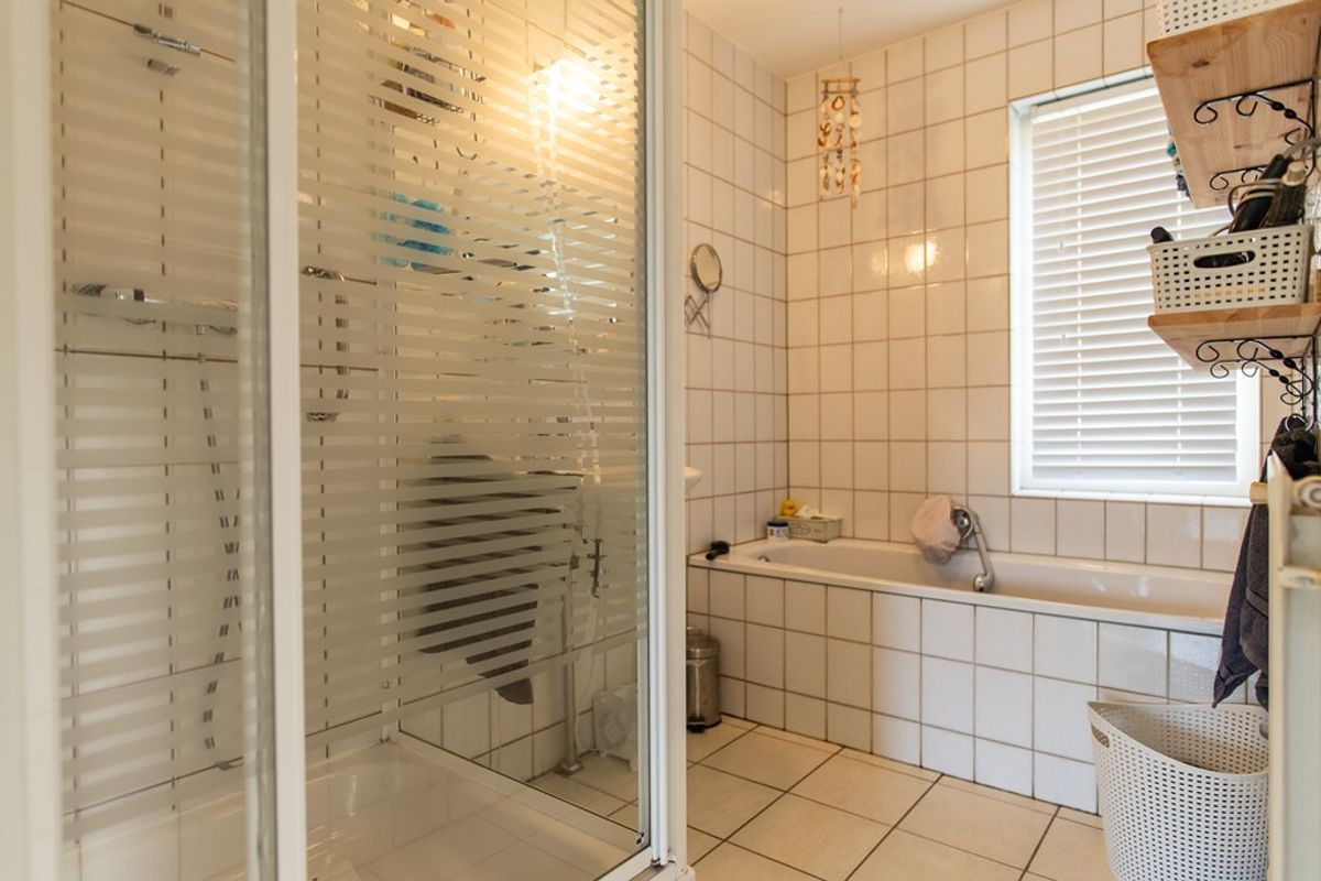 Op de begane grond bevinden zich daarnaast een slaapkamer, een badkamer met ligbad, douche en wastafel, en een separaat toilet met fonteintje. Hierdoor is de woning volledig gelijkvloers te bewonen.