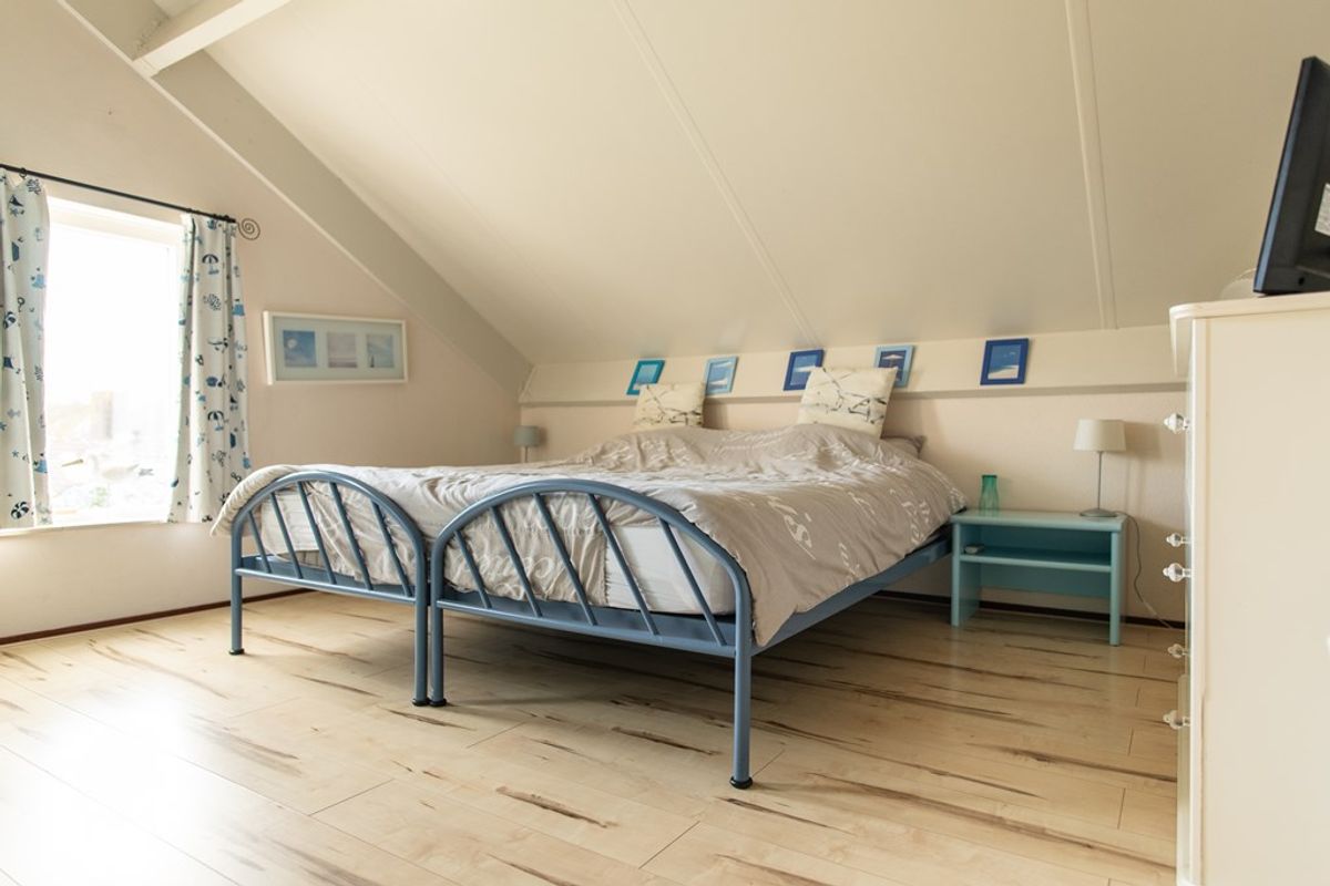 De overloop biedt toegang tot drie ruime slaapkamers en een tweede badkamer met douche, wastafel en toilet. Tevens is er een loggia, een beschut balkon binnen het dakvlak.