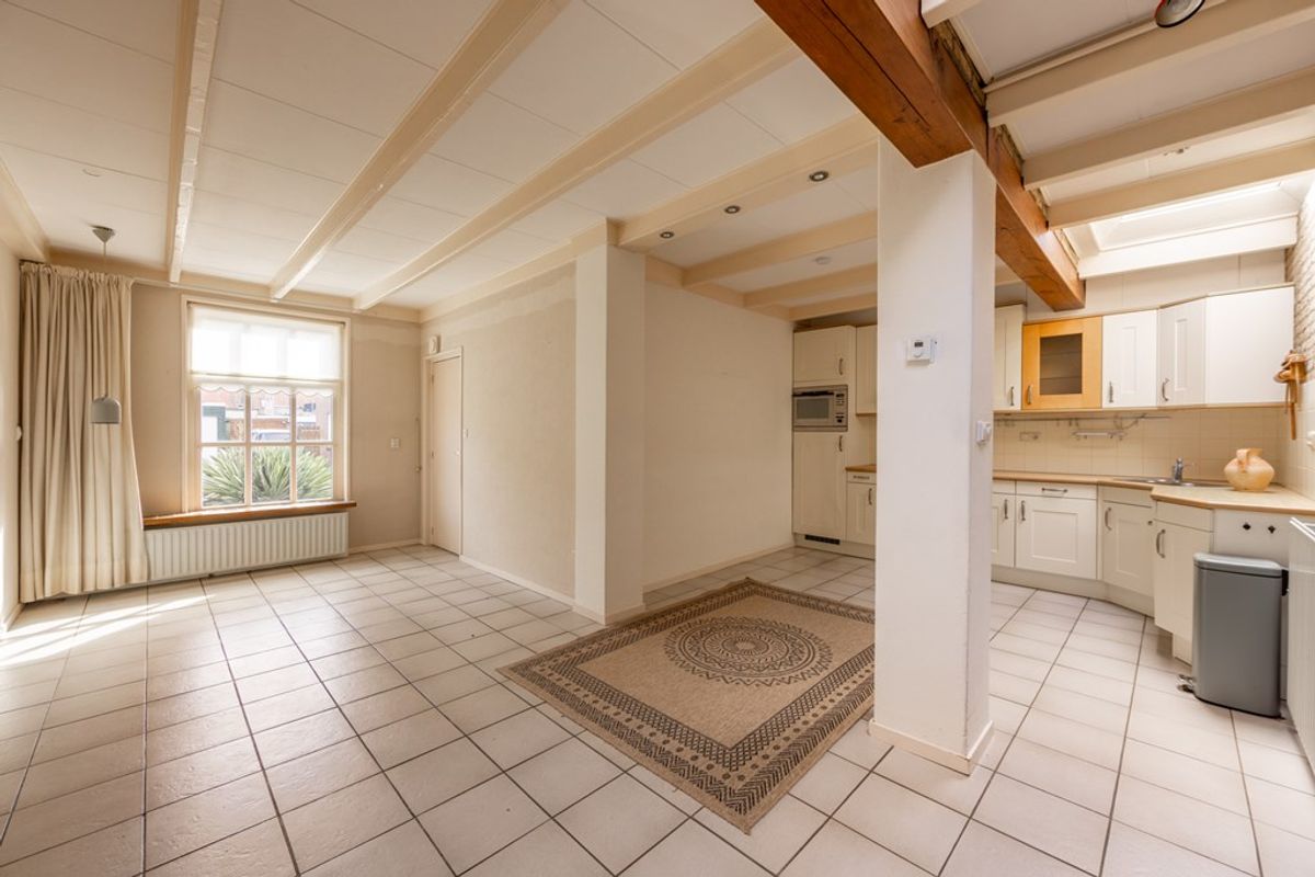 Via de hal met toilet kom je in de badkamer met douche en wastafel en in de ruime L-vormige woonkeuken met inbouwapparatuur en een plavuizenvloer met vloerverwarming. De gezellige woonkamer heeft leuk zicht op de voortuin. Laat je inspireren door de artist impressions van de mogelijkheden die deze ruimte biedt.