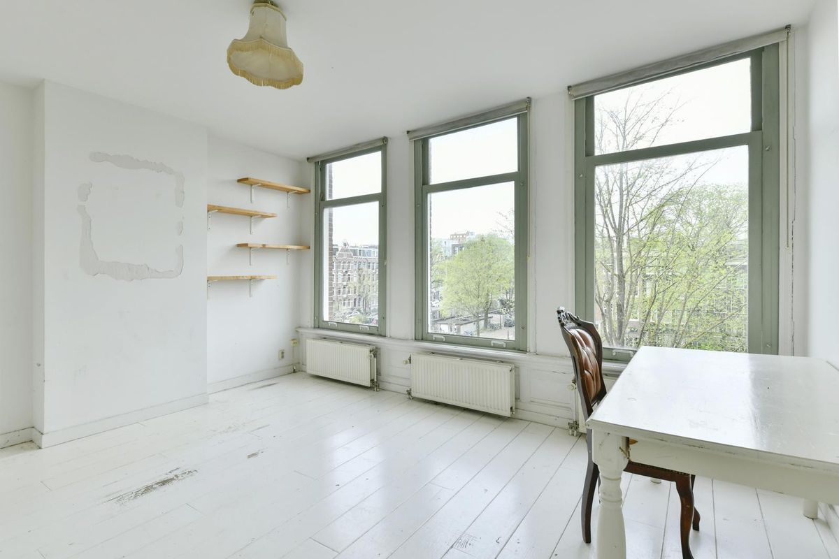 Perfectly located upstairs apartment with a broad view of the canals – intersection of Da Costakade / Jacob van Lennepkanaal and equipped with a spacious living room including plenty of natural light incidence through the many windows, large bedroom at the quiet rear side, bathroom in between, plenty of storage space in the built-in wall cabinets, semi-open kitchen with washing machine connection and overlooking the neighbors' backyards. With a touch of love, this potential house will undoubtedly become your lovely home before you know it. Ideal location in the bustling Amsterdam Oud-West (old west area) and situated on OWN LAND – so you pay no leasehold at all here!