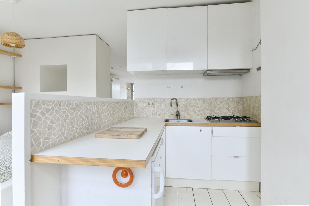 - Half-open keuken achterzijde met wasmachine-aansluiting;