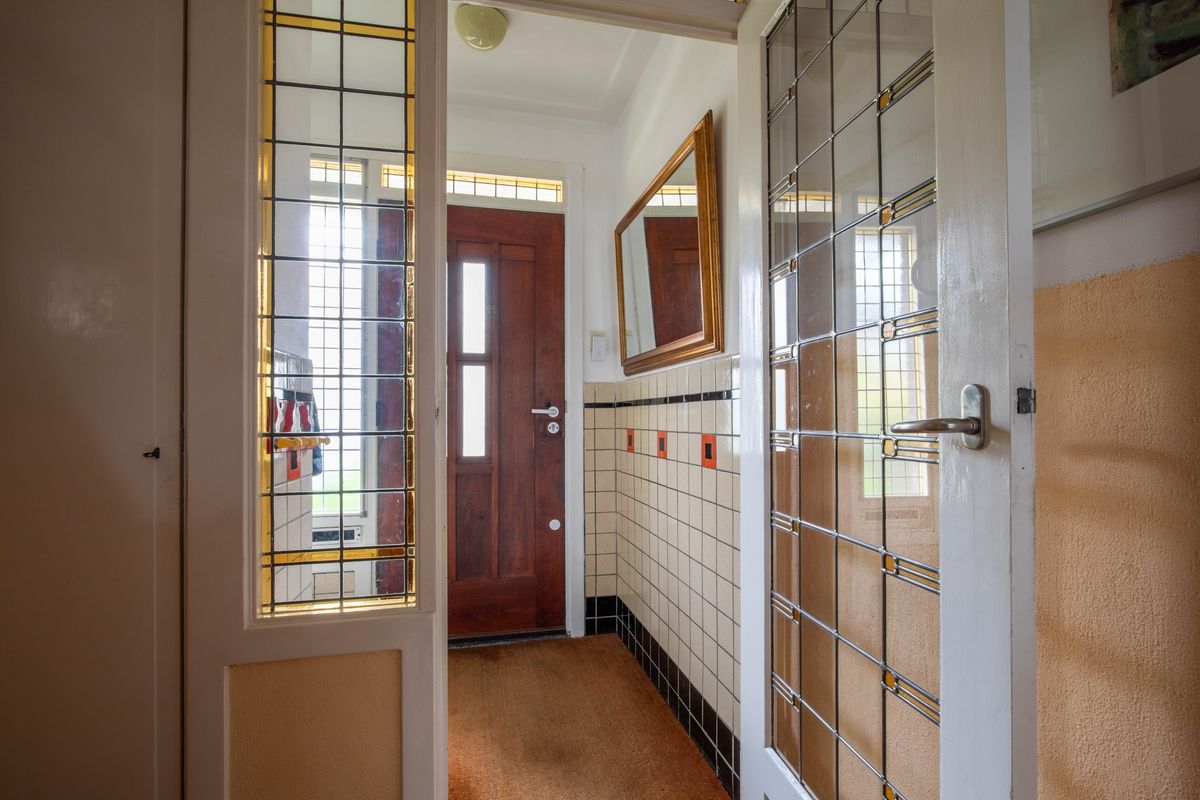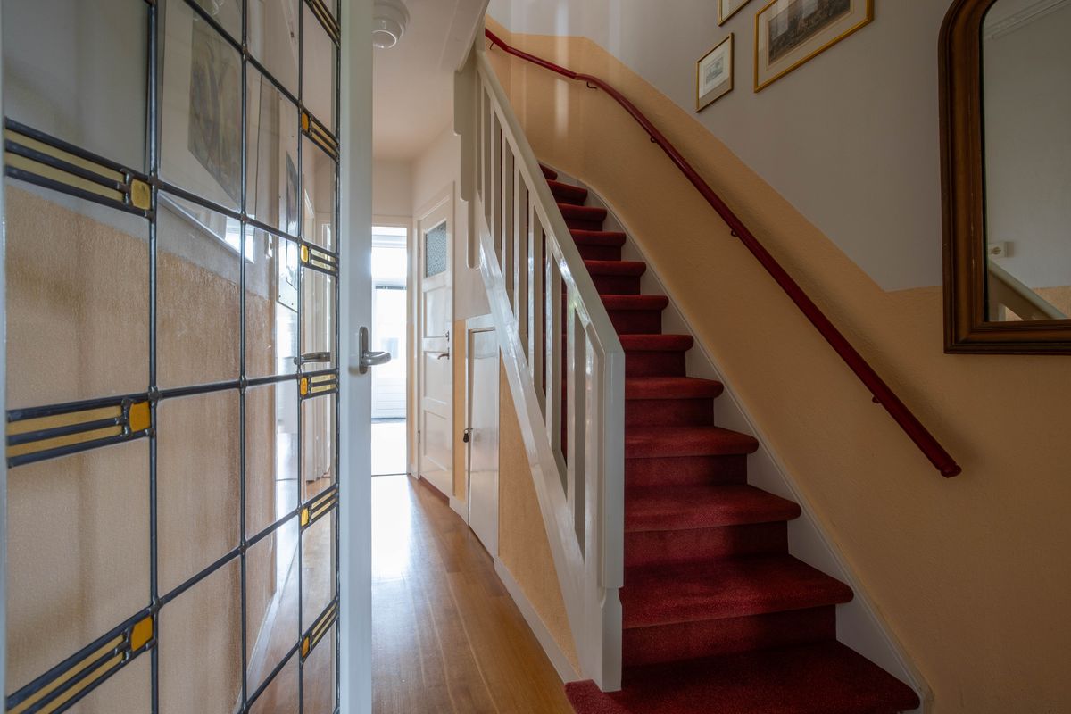 Middels de verzorgde voortuin bereikt u de vestibule met de originele glas-in-lood ramen en tegels. Via de vestibule komt u in de hal. In de hal bevinden zich het toilet met fonteintje, de meterkast, de trapkast en de trap naar de eerste verdieping. Tevens geeft de hal toegang tot de woonkamer en de keuken.