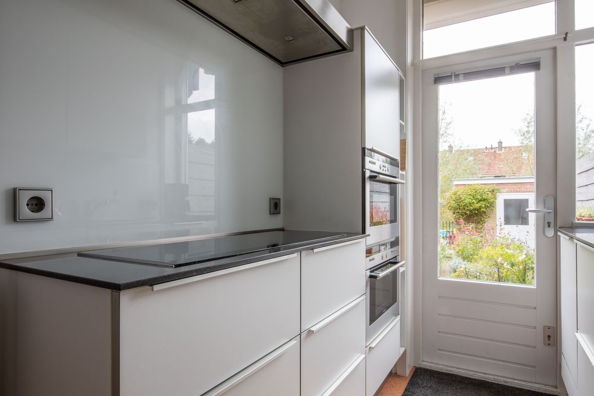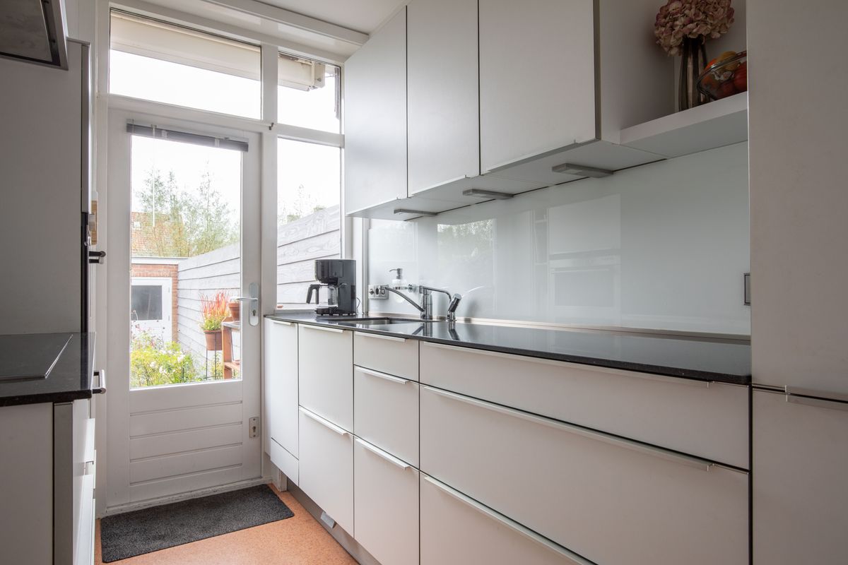 De keuken is praktisch ingedeeld en uitgerust met een inductiekookplaat, een afzuigkap, een hete lucht-grilloven en combi stoomoven, een vaatwasser, koel/vriescombinatie en een quooker. Hier kunt u heerlijk kokkerellen! De deur biedt toegang tot de tuin.
