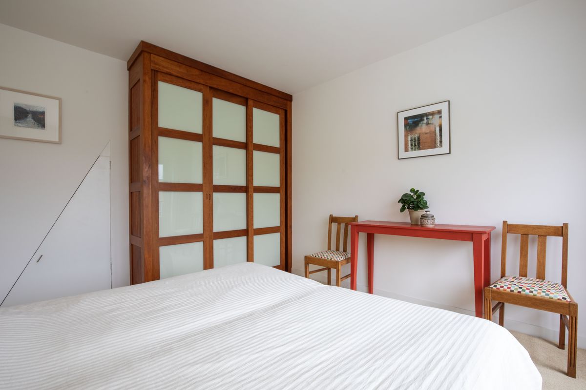 De tweede verdieping is vergroot middels twee dakkapellen, één aan de voorzijde en één aan de achterzijde. Hierdoor zijn er twee fijne kamers gecreëerd. Beide ruimtes hebben prettig veel opbergruimte achter de knieschotten. Tevens bevinden zich op de overloop de aansluitingen voor de wasmachine en de droger. Boven de twee kamers treft u een vliering; wel zo handig om de niet-direct-nodig-spullen op te bergen.