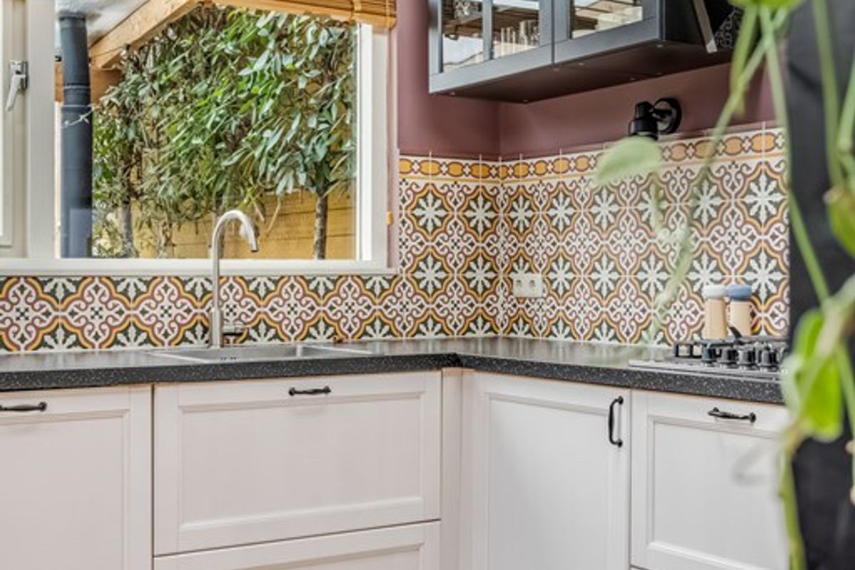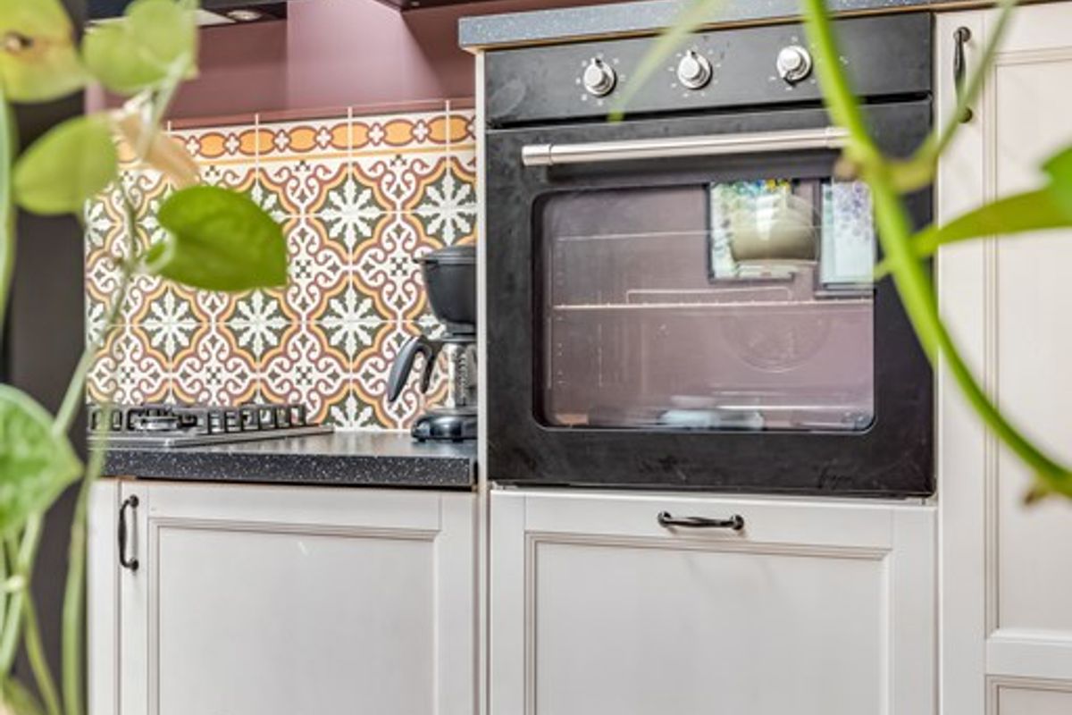 De keuken is uitgerust met diverse inbouwapparatuur, waaronder een 5-pits gasfornuis, afzuigkap, oven, vaatwasser en koelkast. De Portugese tegels geven deze ruimte extra charme en sfeer. Aangrenzend bevindt zich een handige voorraadkast met de aansluiting voor de wasmachine.