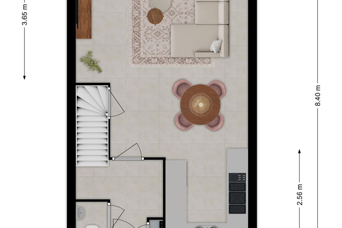 De volledige begane grond is voorzien van een betonlook pvc-vloer.
